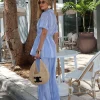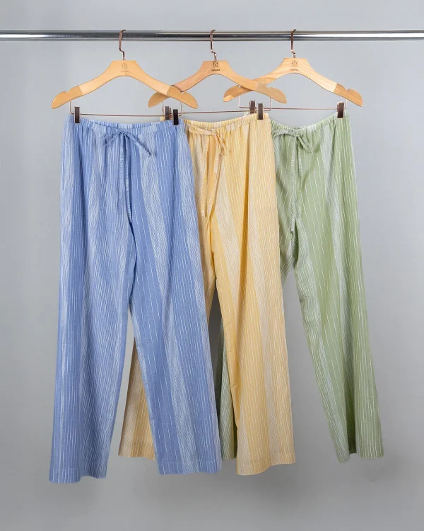 Essa calça é a tradução de conforto elegante. Feita em tricoline listrado 100% algodão, tem um caimento leve, fresco e natural, perfeito para dias de calor. O cós com elástico e ajuste com tiras garante praticidade sem abrir mão do estilo — é aquela peça que você veste e se sente bem de imediato.