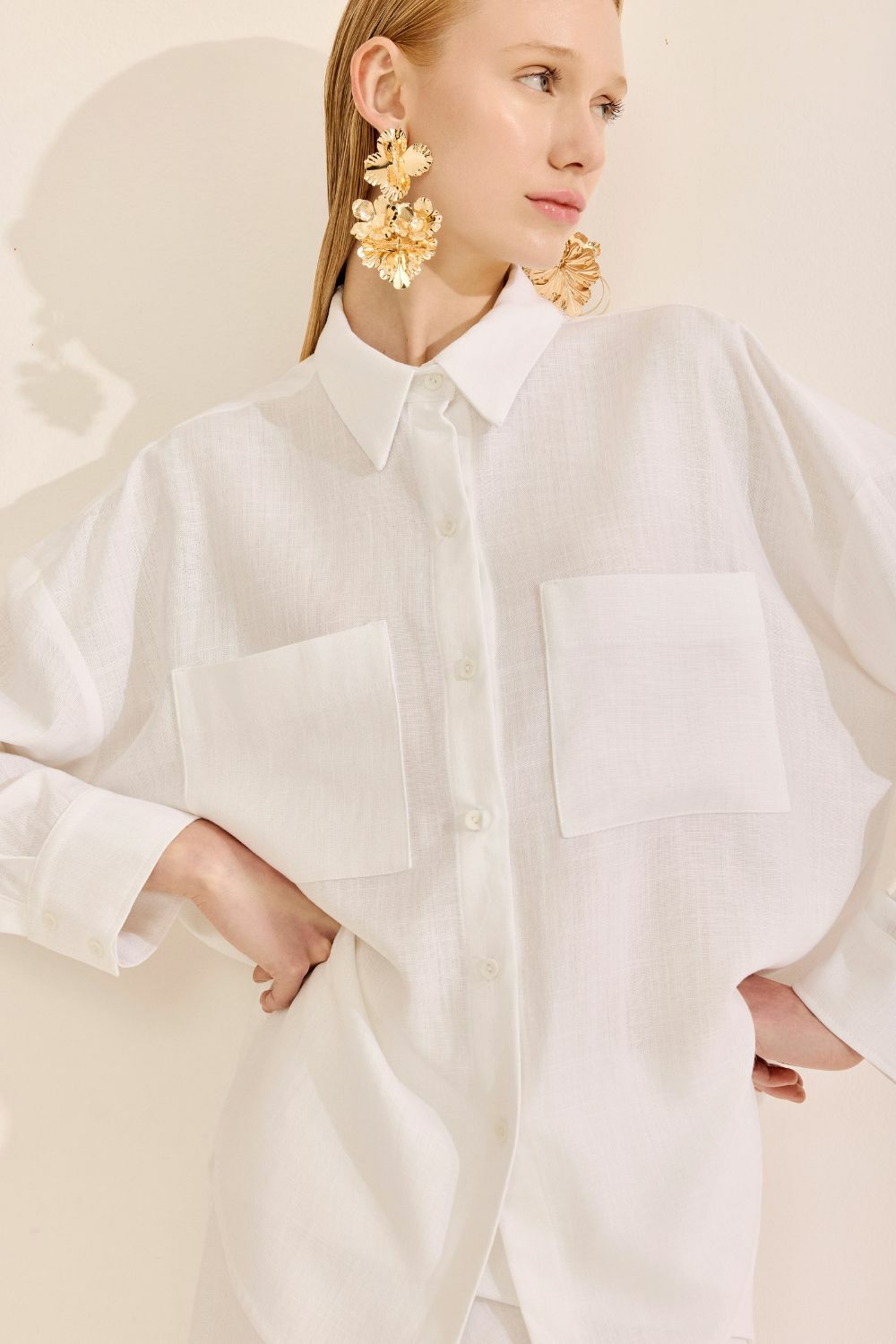 Leve, elegante e naturalmente sofisticada ✨, essa camisa em linho misto é daquelas peças essenciais para um guarda-roupa inteligente e atemporal. A composição em viscose com linho garante um toque macio, fresco e confortável, com caimento fluido e aparência refinada 🤍. A modelagem clássica ganha atualização sutil com a cava deslocada, que traz leveza ao vestir e um ar contemporâneo à peça, sem perder a elegância. Os bolsos aplicados na parte frontal adicionam charme e funcionalidade, enquanto o fechamento frontal por botões mantém a estética clean e versátil. O detalhe da prega nas costas proporciona melhor ajuste ao corpo e movimento ao caminhar, tornando essa camisa feminina elegante perfeita para acompanhar a rotina com praticidade e sofisticação, do trabalho a compromissos mais descontraídos.