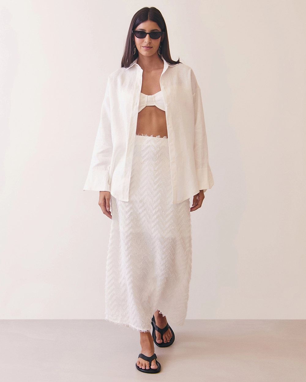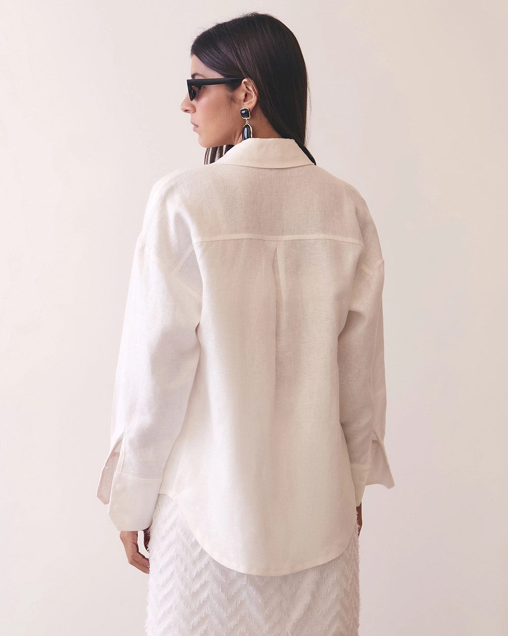 Com modelagem levemente oversized, a peça traz um visual moderno e despretensioso, valorizando a silhueta com fluidez. O fechamento frontal por botões e o colarinho clássico adicionam um ar refinado, tornando-a uma escolha versátil para combinar com saias, calças de alfaiataria ou até sobre biquínis em looks resort chic ☀️.