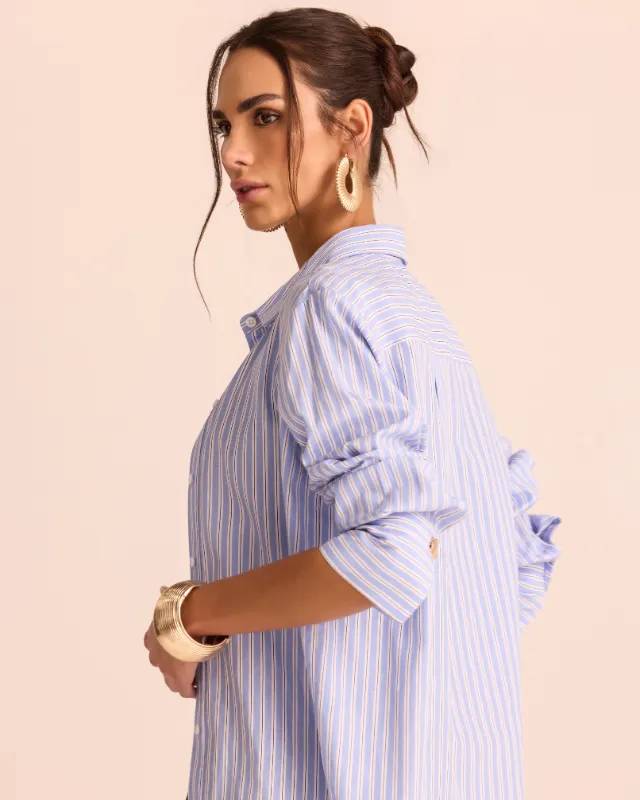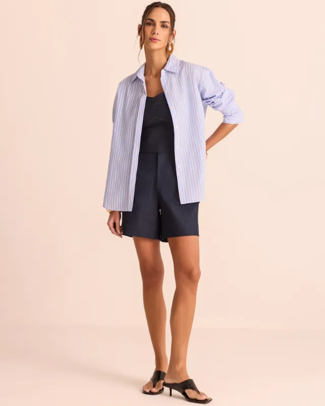 Dica de estilo 💡: use essa camisa feminina de algodão levemente aberta sobre uma regata de seda ou malha fina, combinada com shorts ou calça de alfaiataria, criando um look atual, elegante e cheio de estilo para o dia a dia.