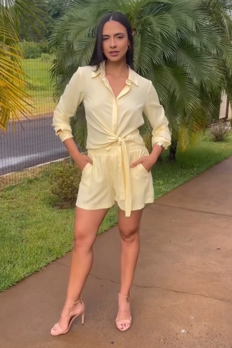 💡 Dica de estilo: use a camisa com shorts ou saias de alfaiataria para um look elegante e atual, ou combine com calça pantalona ou jeans de cintura alta, arrematando com acessórios dourados para uma produção sofisticada e feminina 🌿✨.