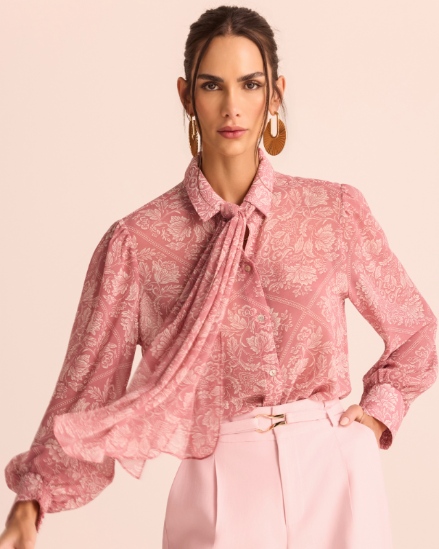 Romântica, elegante e cheia de personalidade 🌸✨, essa camisa estampada de laço avulso é a escolha perfeita para mulheres que gostam de peças marcantes, mas com sofisticação e leveza. Confeccionada em 100% poliéster, ela possui toque suave, caimento fluido e acabamento delicado, proporcionando conforto e movimento ao vestir. A estampa lenço traz um ar clássico e atemporal, com desenho refinado que valoriza o visual e transmite elegância imediata. O grande destaque fica por conta da faixa adicional em ggt, que permite diferentes formas de amarração, funcionando como um laço avulso que adiciona charme e versatilidade à peça 🎀. A modelagem elegante, com mangas longas levemente volumosas e fechamento frontal, equilibra feminilidade e presença, tornando essa camisa ideal para produções profissionais sofisticadas ou ocasiões especiais em que a imagem pede cuidado e estilo 👩💼✨.