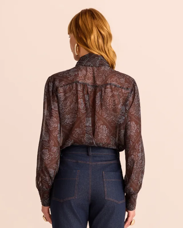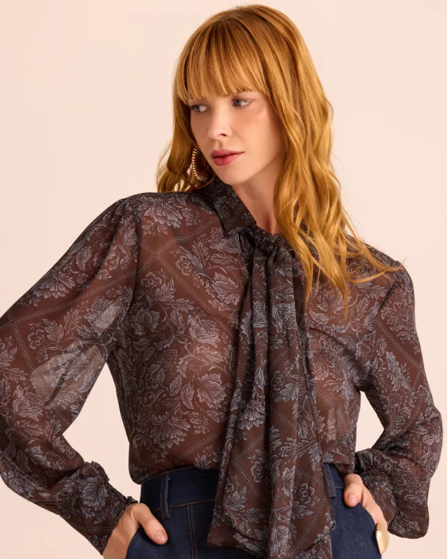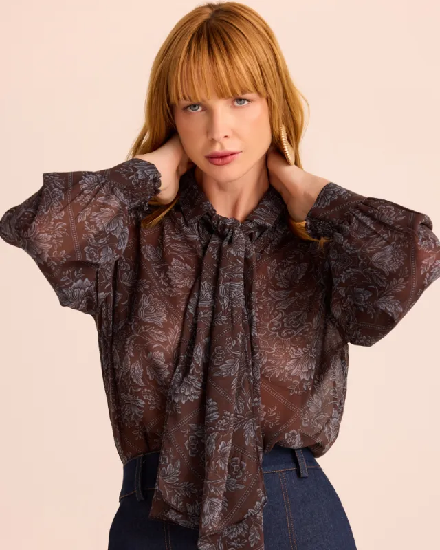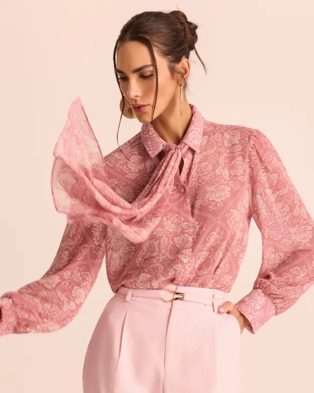 Dica de estilo 💡: use essa camisa estampada feminina com calça de alfaiataria em tom claro ou saia midi estruturada, deixando o laço solto para um visual mais fashion; para uma proposta clássica, amarre a faixa em laço no pescoço e finalize com acessórios delicados.