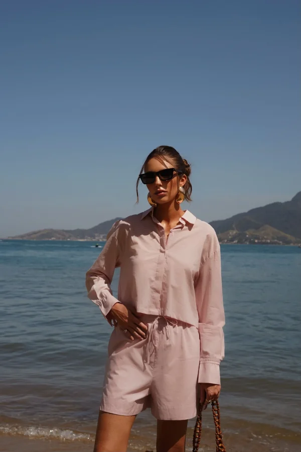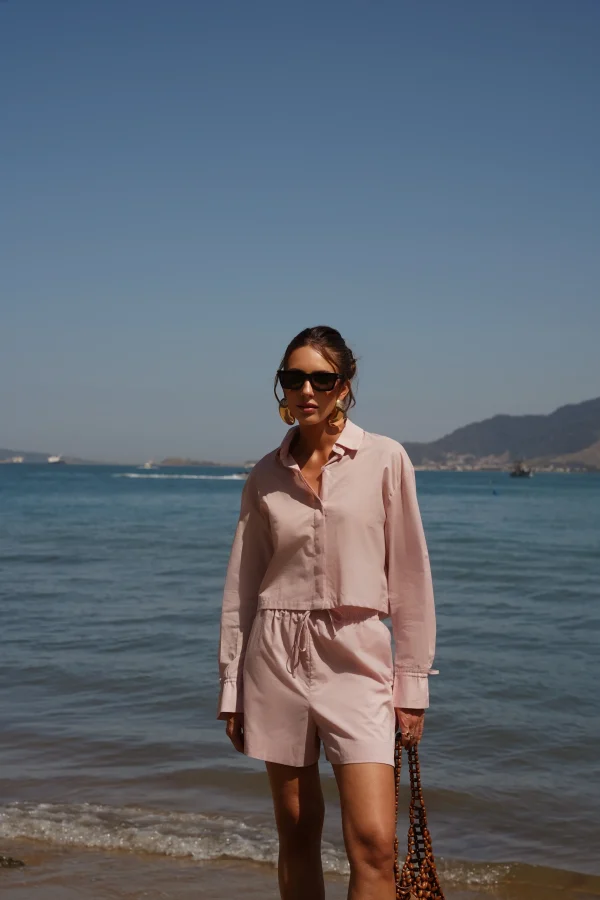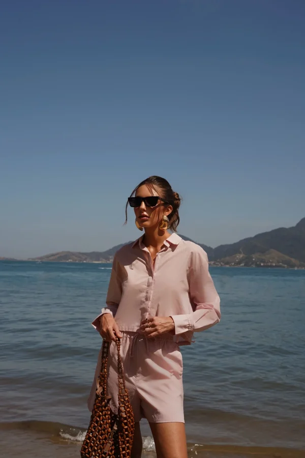 💡 Dica de uso: além do conjunto com o short, use aberta sobre um top ou biquíni, ou combine com uma calça de alfaiataria leve para criar um contraste sofisticado e super atual.
