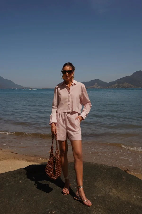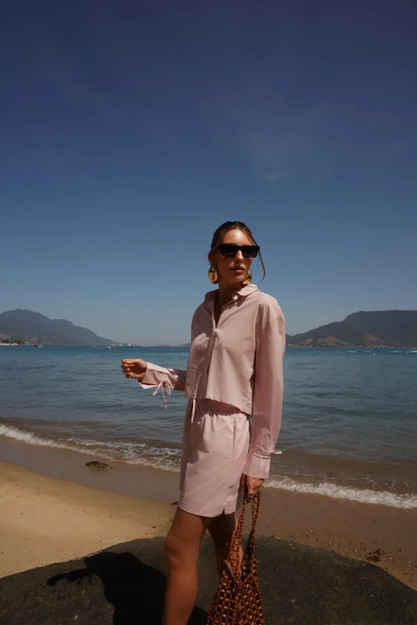 O design cropped, os punhos ajustáveis com amarração e a gola clássica deixam o visual moderno, descomplicado e ainda assim elegante. Um verdadeiro curinga para composições de verão!