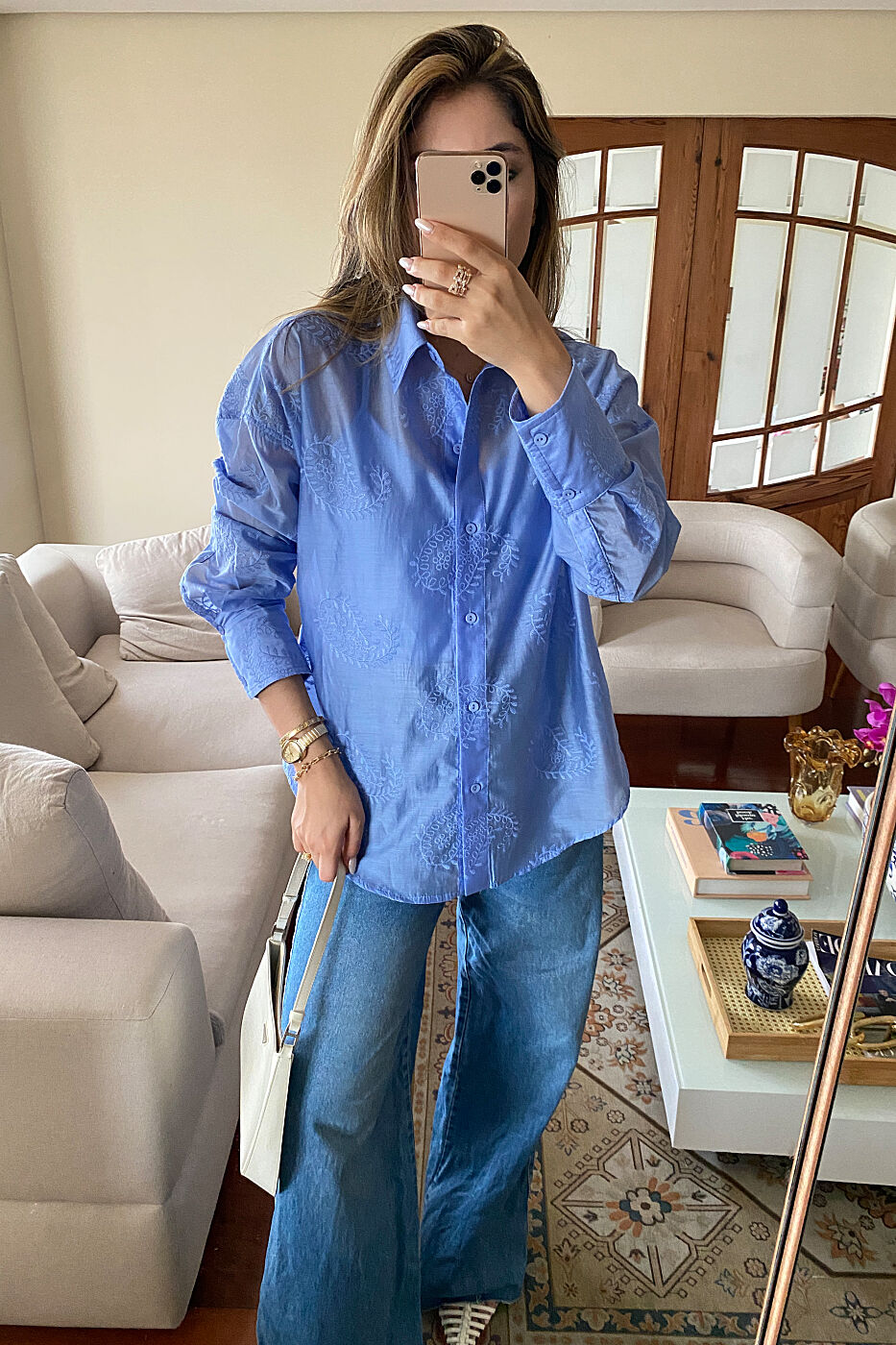 Com uma elegância leve e cheia de personalidade ✨, essa camisa em lyocell com bordado paisley é daquelas peças que encantam nos detalhes e elevam qualquer produção. O bordado delicado cria um efeito visual sofisticado e feminino, trazendo textura e charme na medida certa 🤍. A modelagem clássica, com gola tradicional e fechamento frontal por botões, garante atemporalidade e versatilidade, enquanto o tecido leve e levemente translúcido adiciona frescor e modernidade ao visual, sem perder a sofisticação. Pensada para a rotina da mulher elegante e prática, a peça acompanha regata de malha, oferecendo conforto, segurança e múltiplas possibilidades de uso, seja em ambientes profissionais ou em ocasiões mais descontraídas, sempre com um ar refinado.