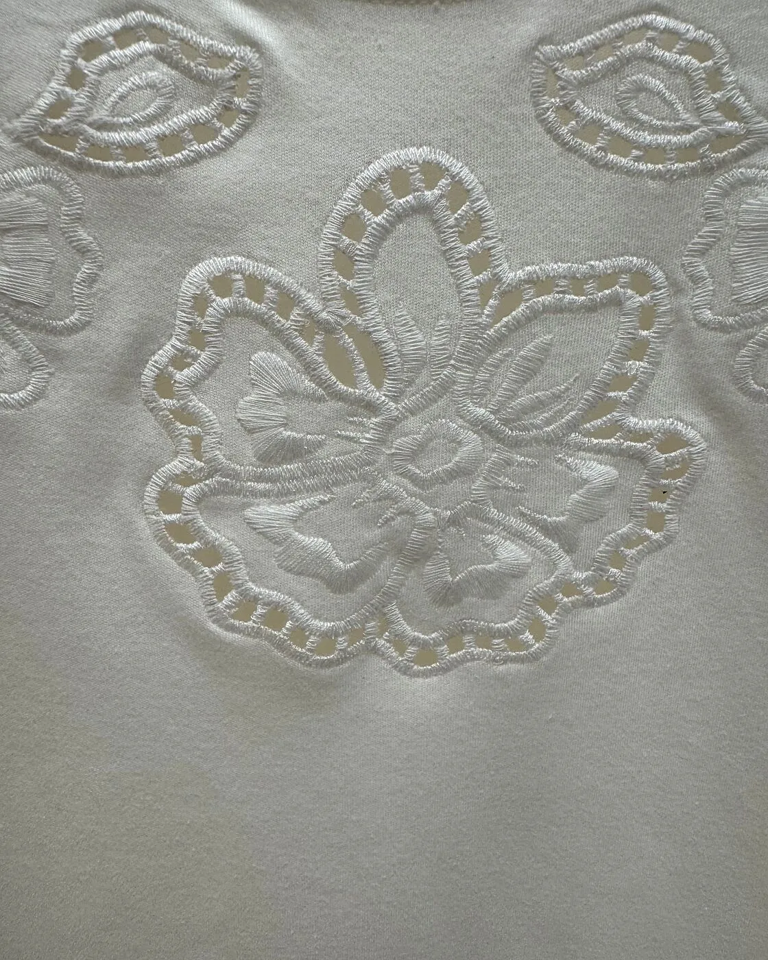 Ficha técnica: camiseta confeccionada em malha 100% algodão, sem forro, modelagem reta, bordado floral localizado, cor off-white, origem nacional. Cuidados de lavagem: lavar à mão ou em ciclo delicado, sempre do avesso, não usar alvejante, secar à sombra e passar em temperatura baixa, evitando o contato direto com o bordado.