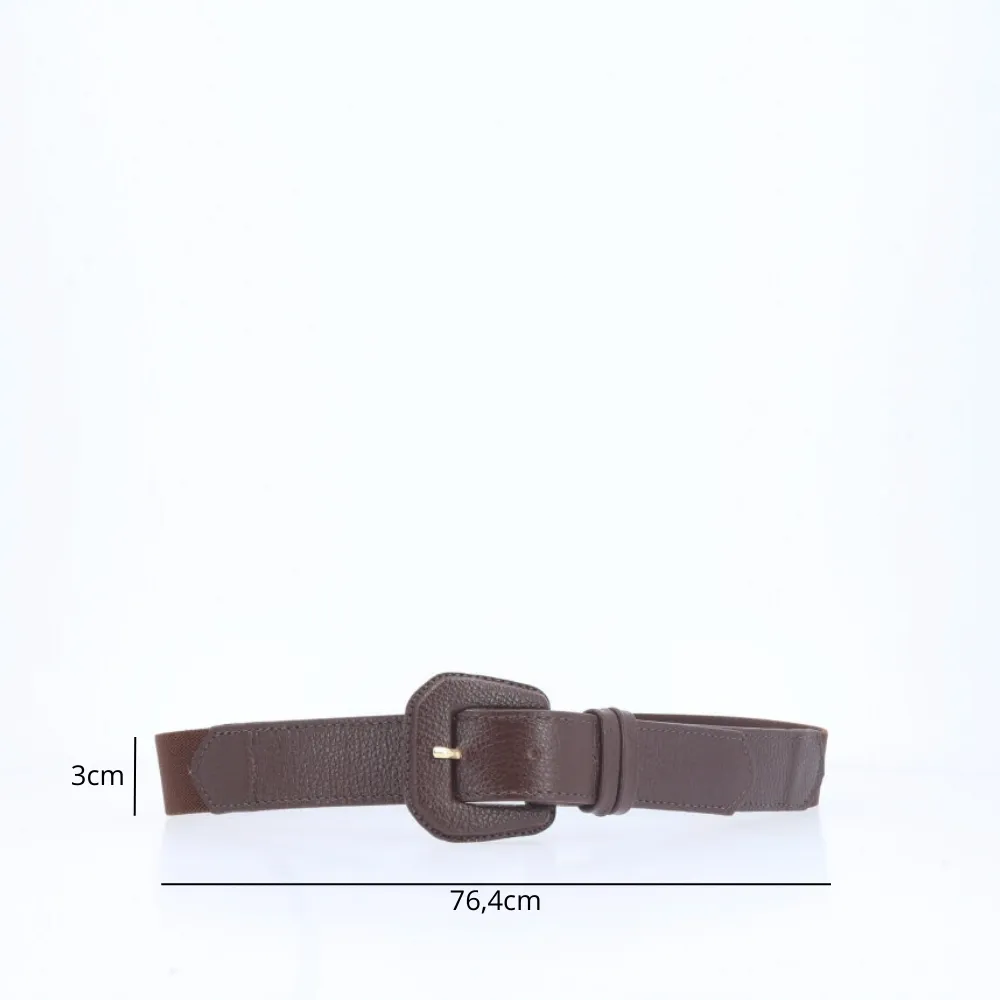 Ficha técnica: confeccionado em elástico de alta resistência com frontal em couro sintético; produto nacional 🇧🇷 (Bauarte); fivela e passante encapados em couro; pino metálico dourado; largura 3cm; comprimento total 76,4cm; peso aproximado 75g; limpeza com pano seco e macio, evitando contato com água e produtos químicos.