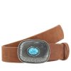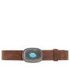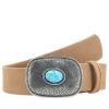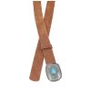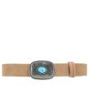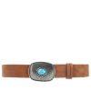 O cinto de couro camurça Taylor é aquele acessório que traz personalidade imediata ao look. A fivela em metal trabalhado com aplique de pedra azul é o grande destaque, adicionando um toque boho sofisticado e autêntico. Robusto e estiloso, é perfeito para marcar presença em produções casuais ou dar um ar diferenciado até às combinações mais simples.