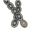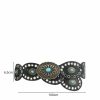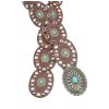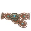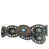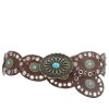 O cinto western de couro Milia é a peça perfeita para quem busca autenticidade e estilo marcante. Com design inspirado no boho e no country chic, ele se destaca pela fivela folheada em ouro velho, pelos detalhes gravados e pelo aplique de pedras turquesa que trazem ainda mais personalidade. Largo e imponente, é o acessório ideal para transformar produções básicas em looks poderosos.