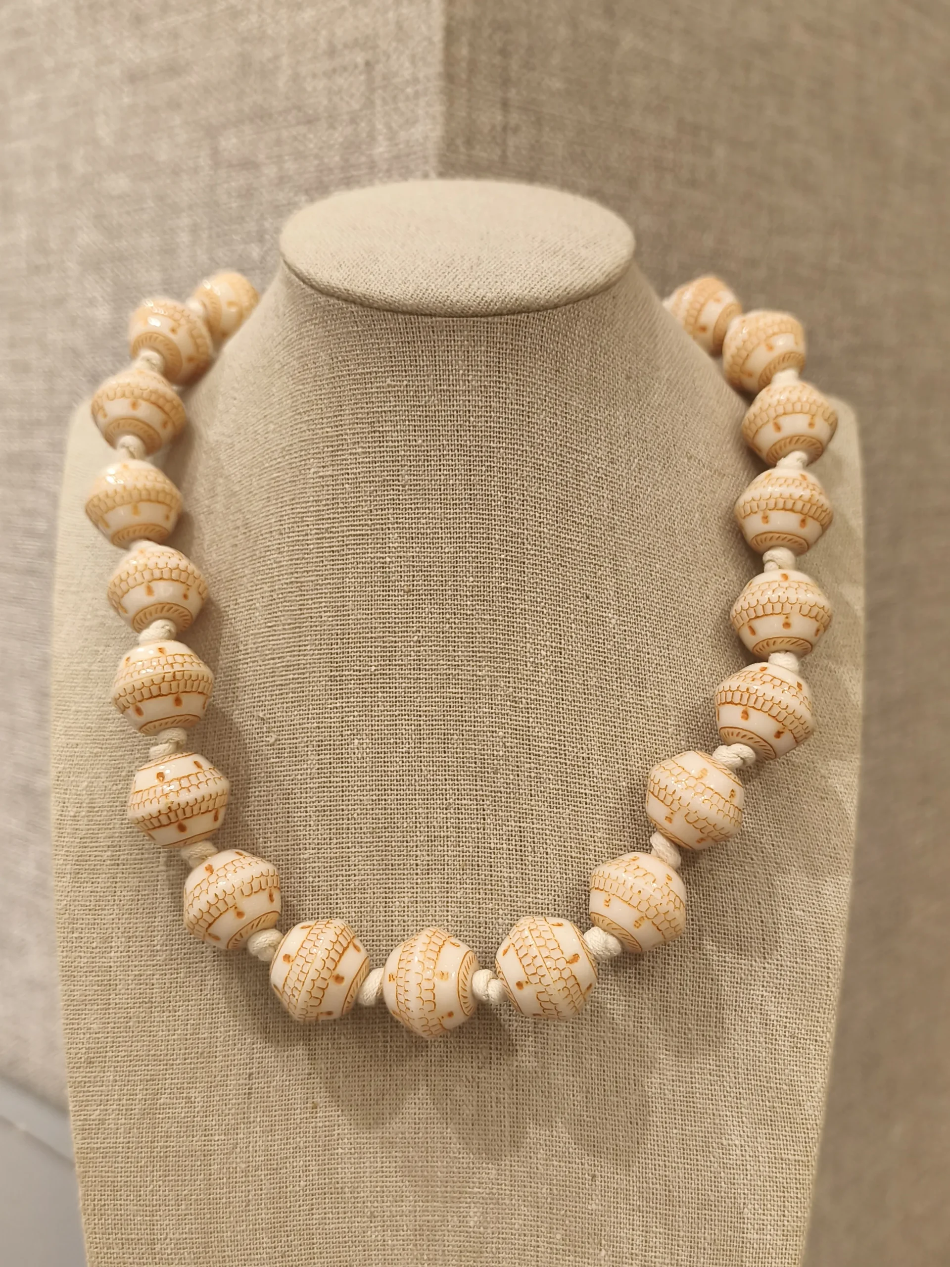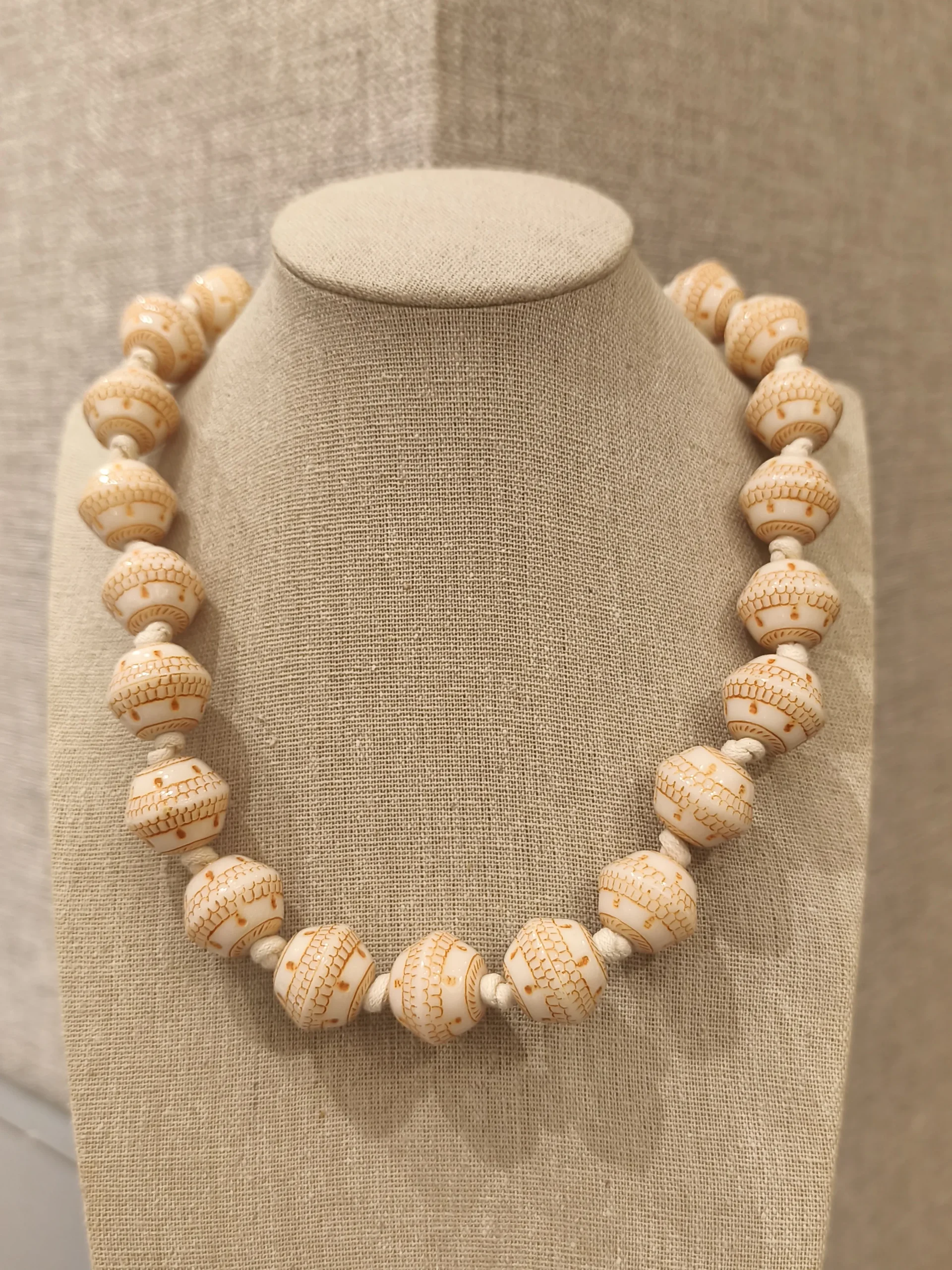 Este colar em resina bege é a definição de elegância simples — aquela que não precisa de esforço para impressionar ✨. Suas contas geométricas, perfeitamente proporcionadas, criam um visual moderno e ao mesmo tempo suave, trazendo textura e personalidade de maneira sutil. O tom bege, quente e sofisticado, conversa com qualquer paleta de cores, tornando a peça extremamente versátil para o dia a dia das mulheres que gostam de acessórios que elevam o look sem roubar a cena. Ele funciona lindamente com camisas brancas, tricôs claros, vestidos fluidos e produções com tons terrosos, sempre adicionando um toque de estilo natural e atemporal 🤎.