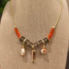 Palavras-chave: colar dourado cristal, colar com pérola barroca, colar concha dourada, colar sofisticado feminino, colar moderno com pingentes, colar coral elegante.
