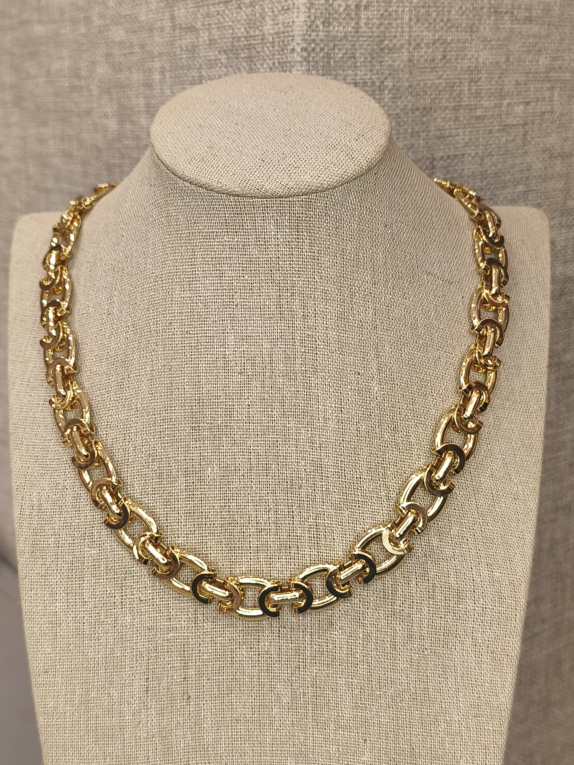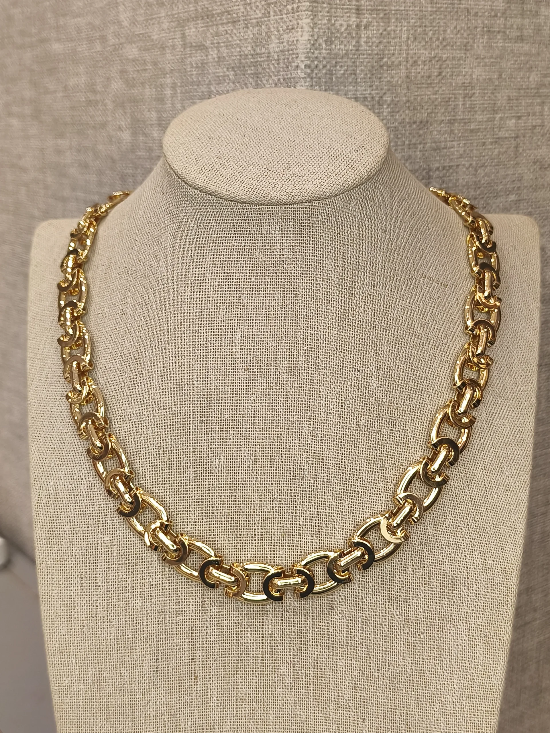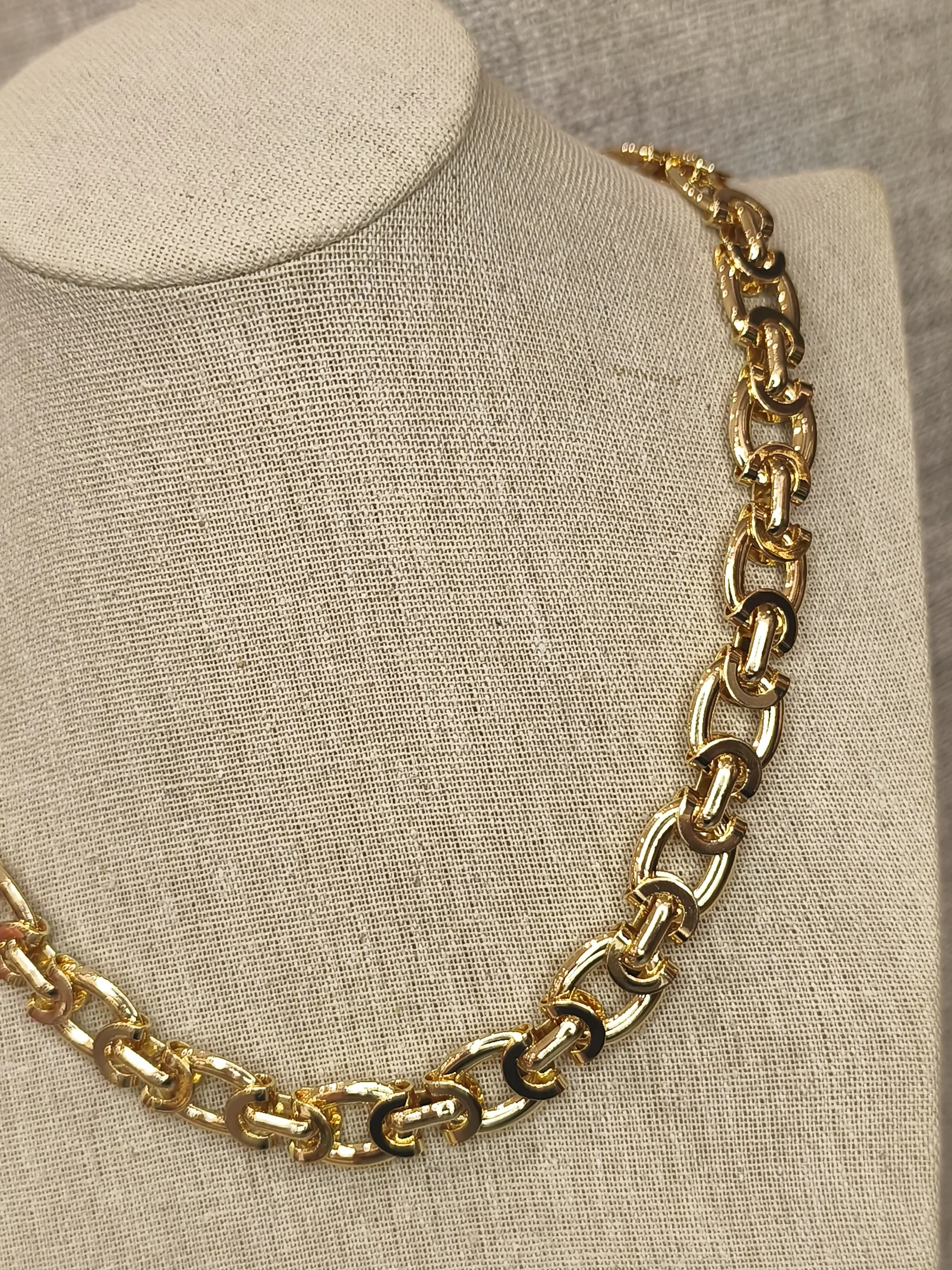 Este colar dourado de elos é a tradução perfeita de força, estilo e sofisticação — um daqueles acessórios que transformam qualquer produção com um único toque ✨. Seus elos marcantes, bem estruturados e com acabamento polido, criam um visual elegante e imponente, ideal para mulheres que gostam de transmitir presença sem abrir mão da delicadeza. O dourado intenso ilumina o colo de forma equilibrada, adicionando brilho na medida certa e trazendo um ar moderno e versátil. É o tipo de peça que funciona tanto com looks clássicos — como camisas brancas, tricôs finos e blazers — quanto com produções mais descontraídas, elevando tudo ao nível do sofisticado. Um colar que conversa com o guarda-roupa inteiro e sempre entrega impacto e bom gosto 💛.