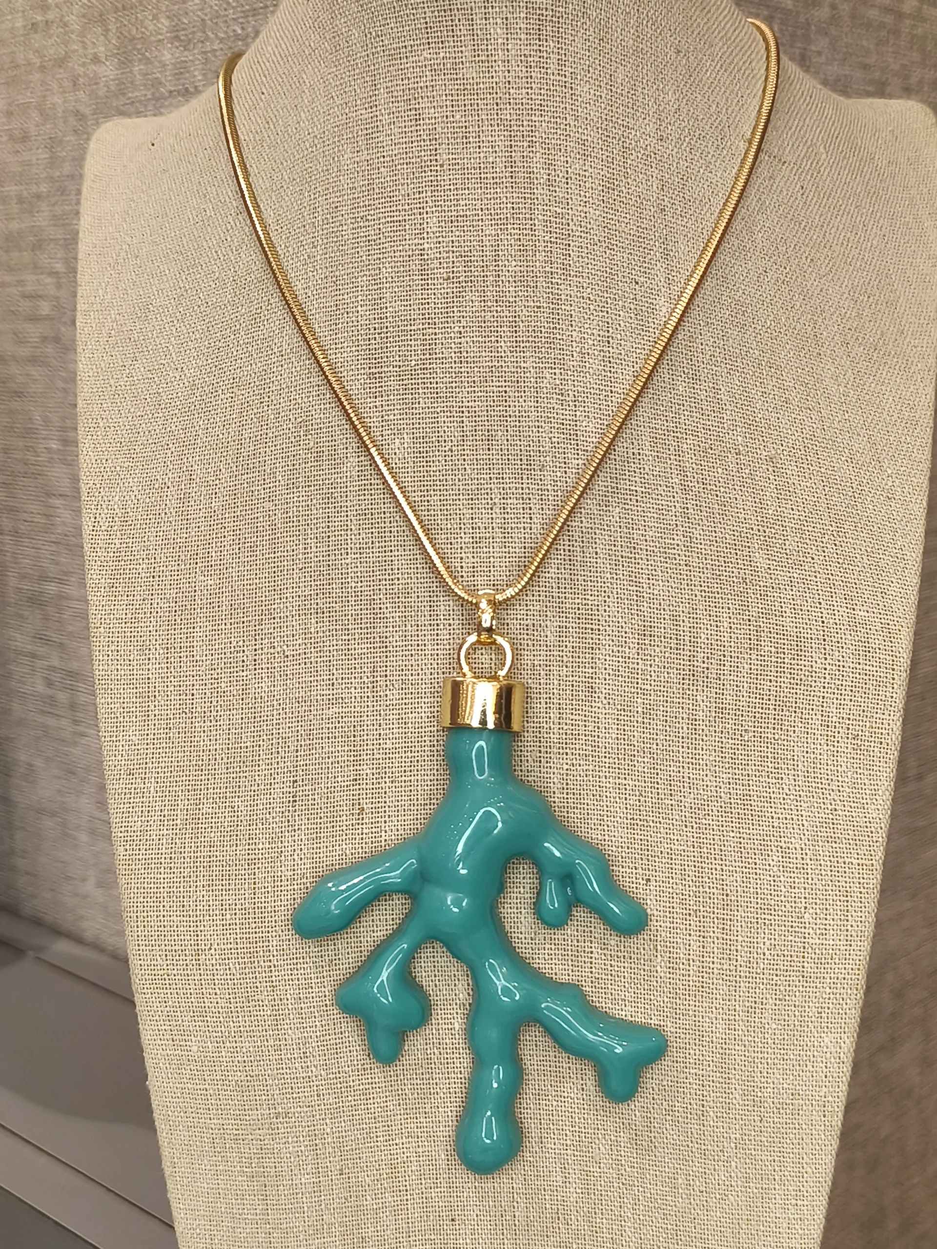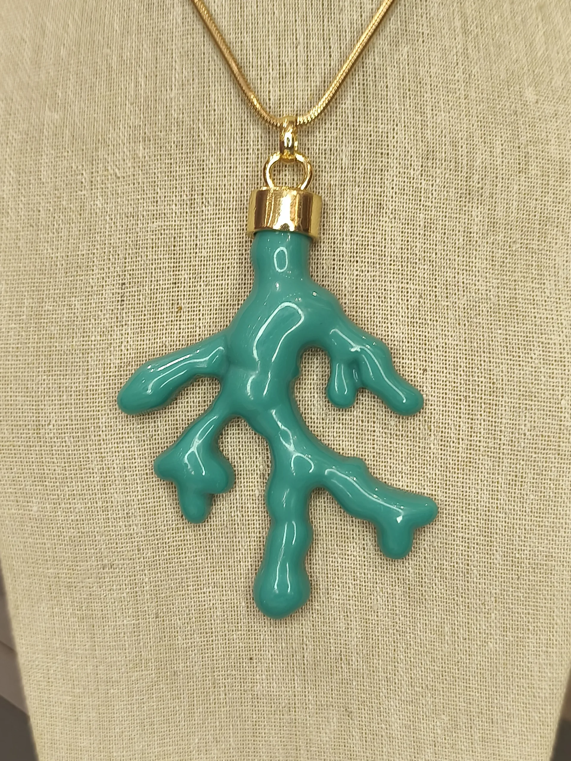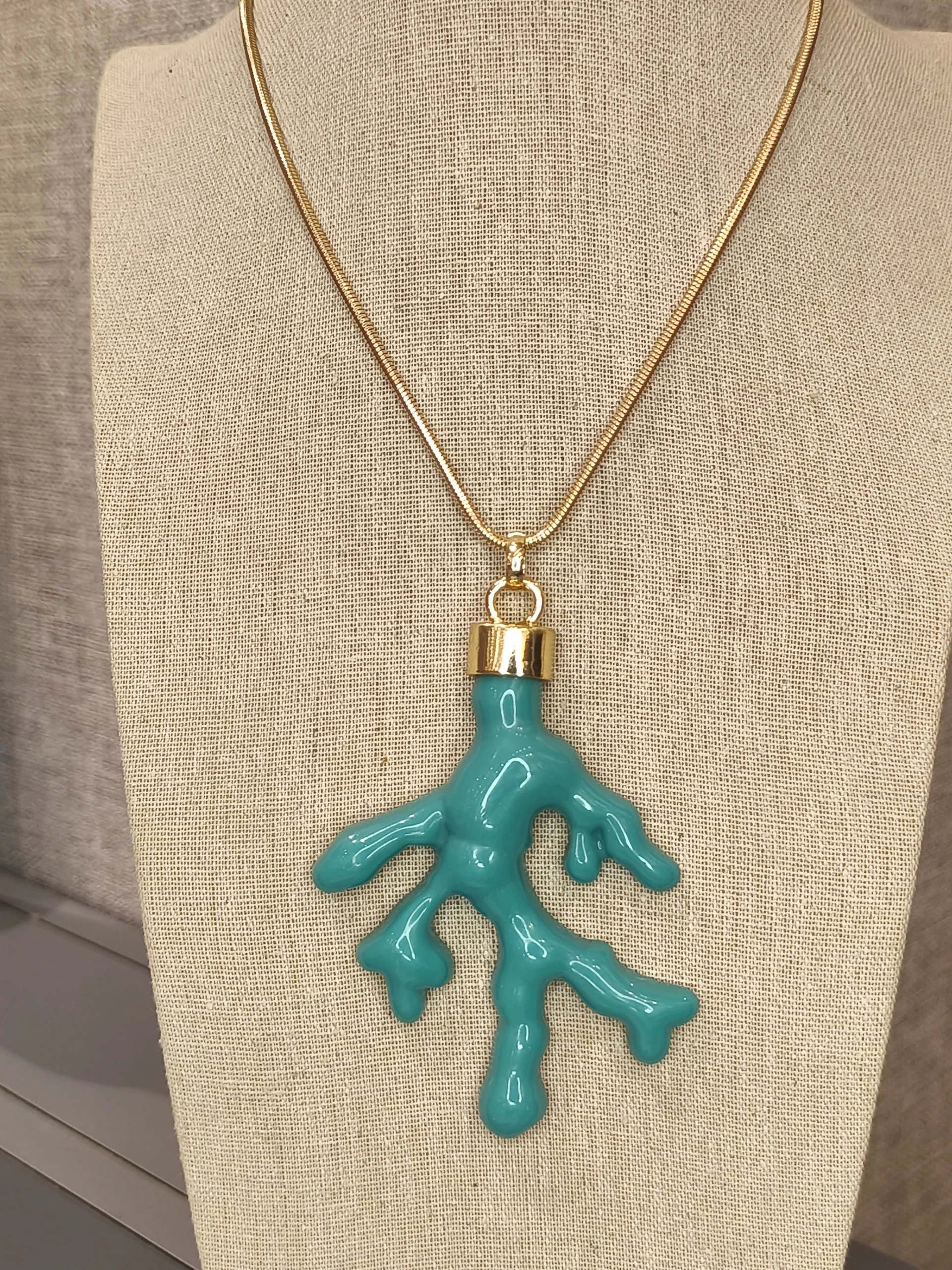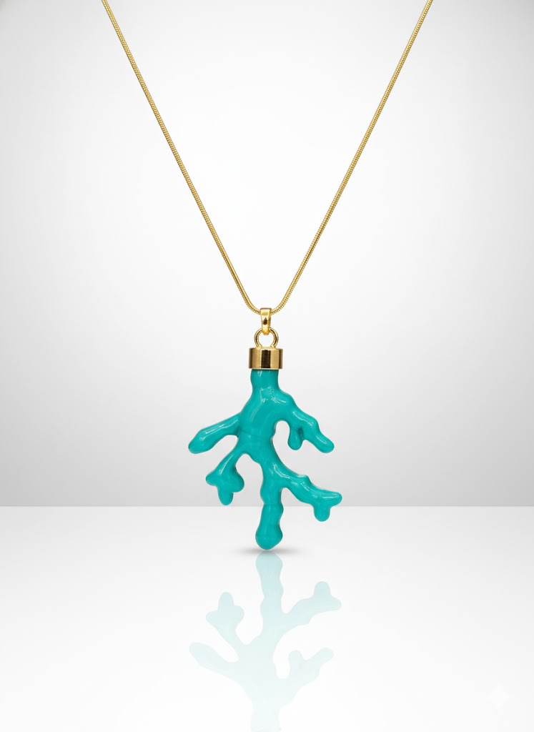 Este colar dourado longo com pingente de coral turquesa é uma peça cheia de energia, frescor e personalidade ✨. A corrente fina e alongada cria uma linha elegante que valoriza o colo, enquanto o pingente em formato de coral, em um tom vibrante de azul-turquesa, traz aquele ar veranil irresistível — leve, moderno e com um toque artístico. O contraste entre o dourado quente e o azul intenso cria um visual sofisticado e ao mesmo tempo descontraído, perfeito para mulheres que gostam de acessórios que iluminam o look sem abrir mão da praticidade. Ele funciona maravilhosamente com camisas brancas, vestidos fluídos, peças em linho e até looks de alfaiataria, trazendo um ponto de cor que transforma o visual com naturalidade 🌊💛.