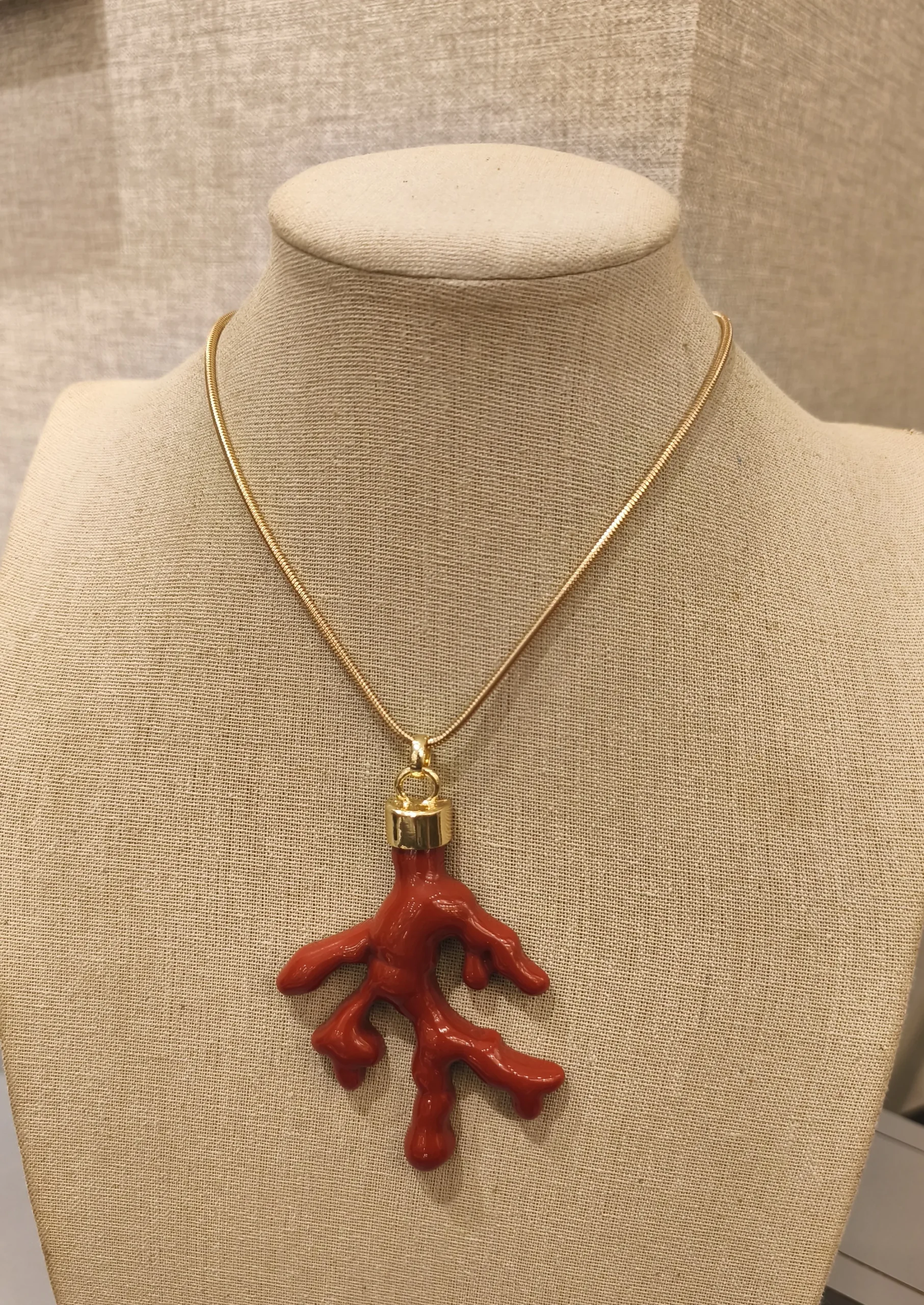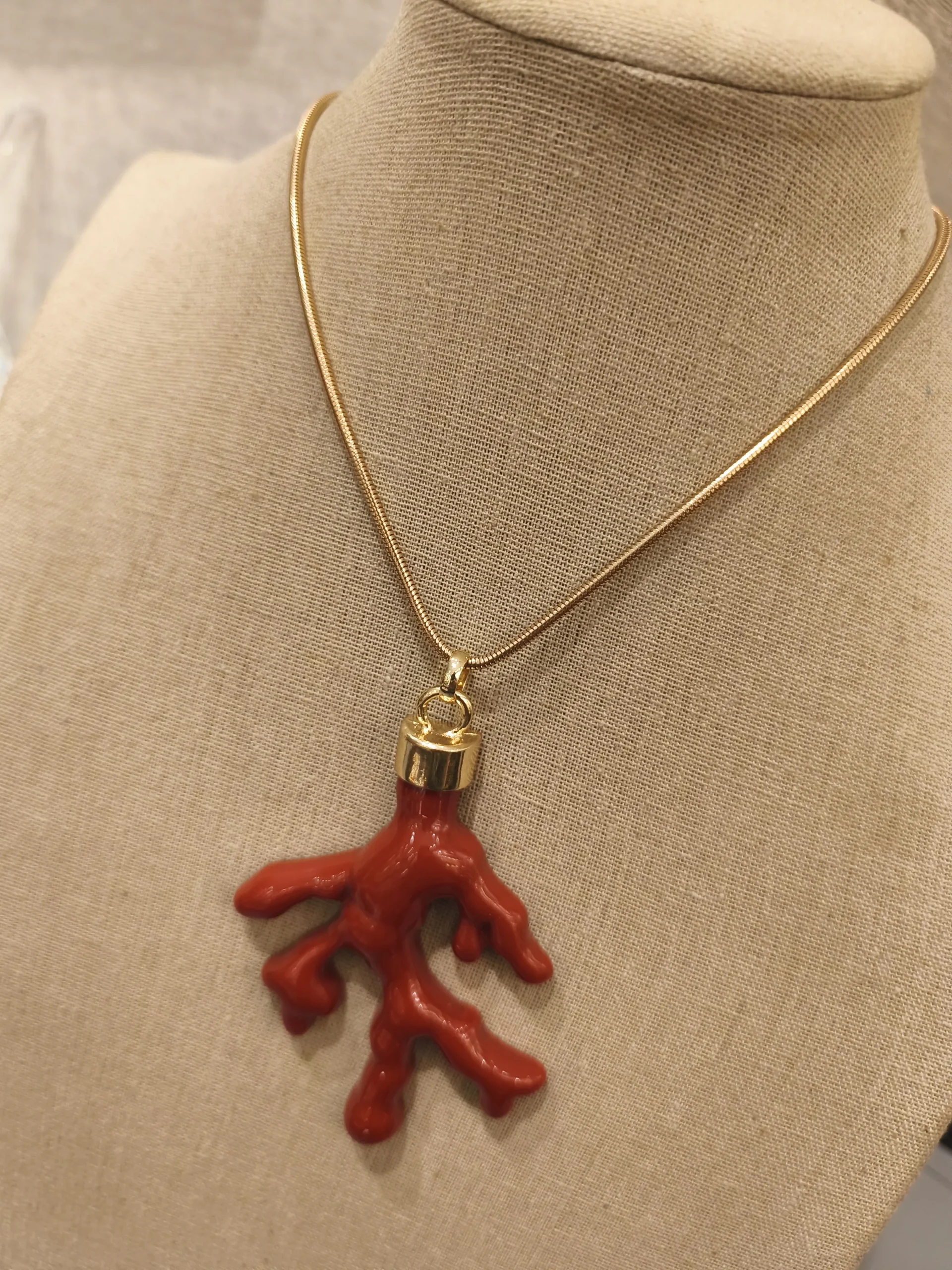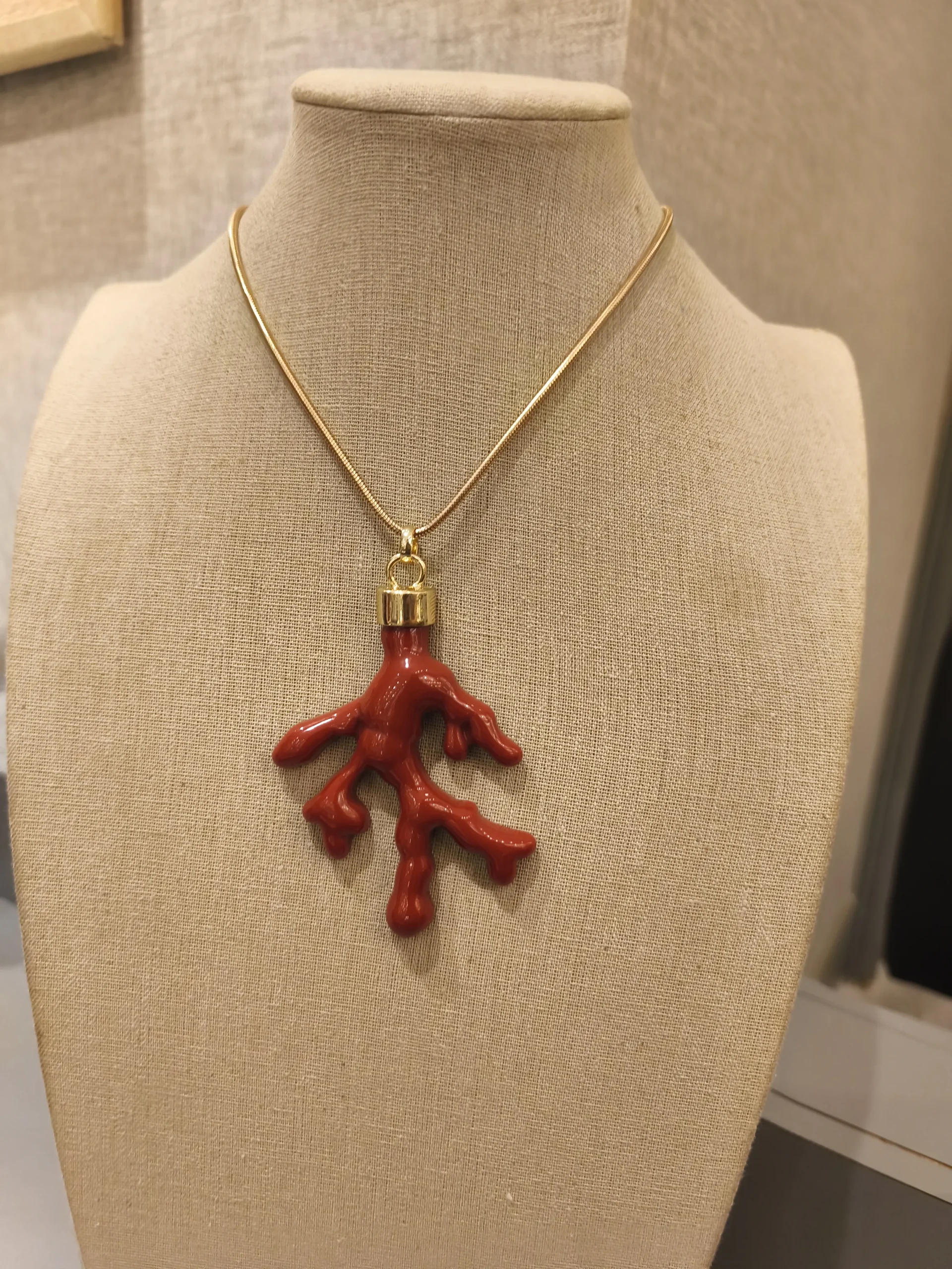 Este colar dourado com pingente de coral 🍂✨ é uma peça que exala força, elegância e naturalidade. A corrente longa e delicada cria uma linha fluida e sofisticada sobre o colo, enquanto o pingente em forma de coral vermelho intenso traz energia, vibração e um toque artesanal que o torna único. O contraste entre o dourado reluzente e o vermelho vivo dá vida à composição, transformando o acessório em um símbolo de estilo e confiança. É uma peça perfeita para mulheres que amam elegância com personalidade — daquelas que não passam despercebidas, mas encantam pela sutileza.