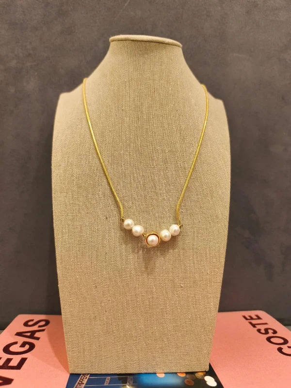 Palavras-chave: colar dourado, colar com pérola, colar madrepérola, colar delicado, colar elegante, colar feminino, acessório sofisticado.