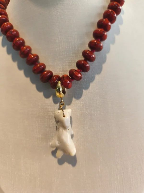 O Colar dourado com contas vermelhas e pingente em resina é aquele detalhe que faz toda diferença no look ✨