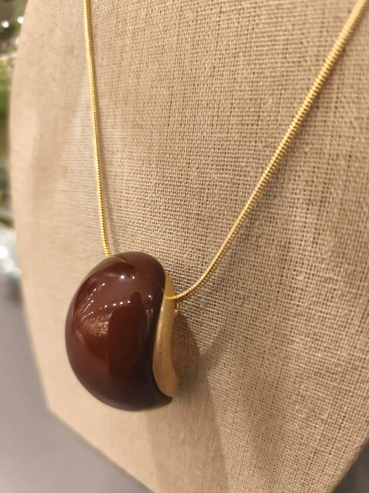 Dica de estilo: use o colar dourado PG resina marfim com blusas em tons neutros, como off-white, areia ou marrom-claro, para um visual monocromático refinado. Ele também cria um lindo contraste com vestidos em tons escuros, realçando o brilho suave do pingente e iluminando o colo de forma sutil e sofisticada.