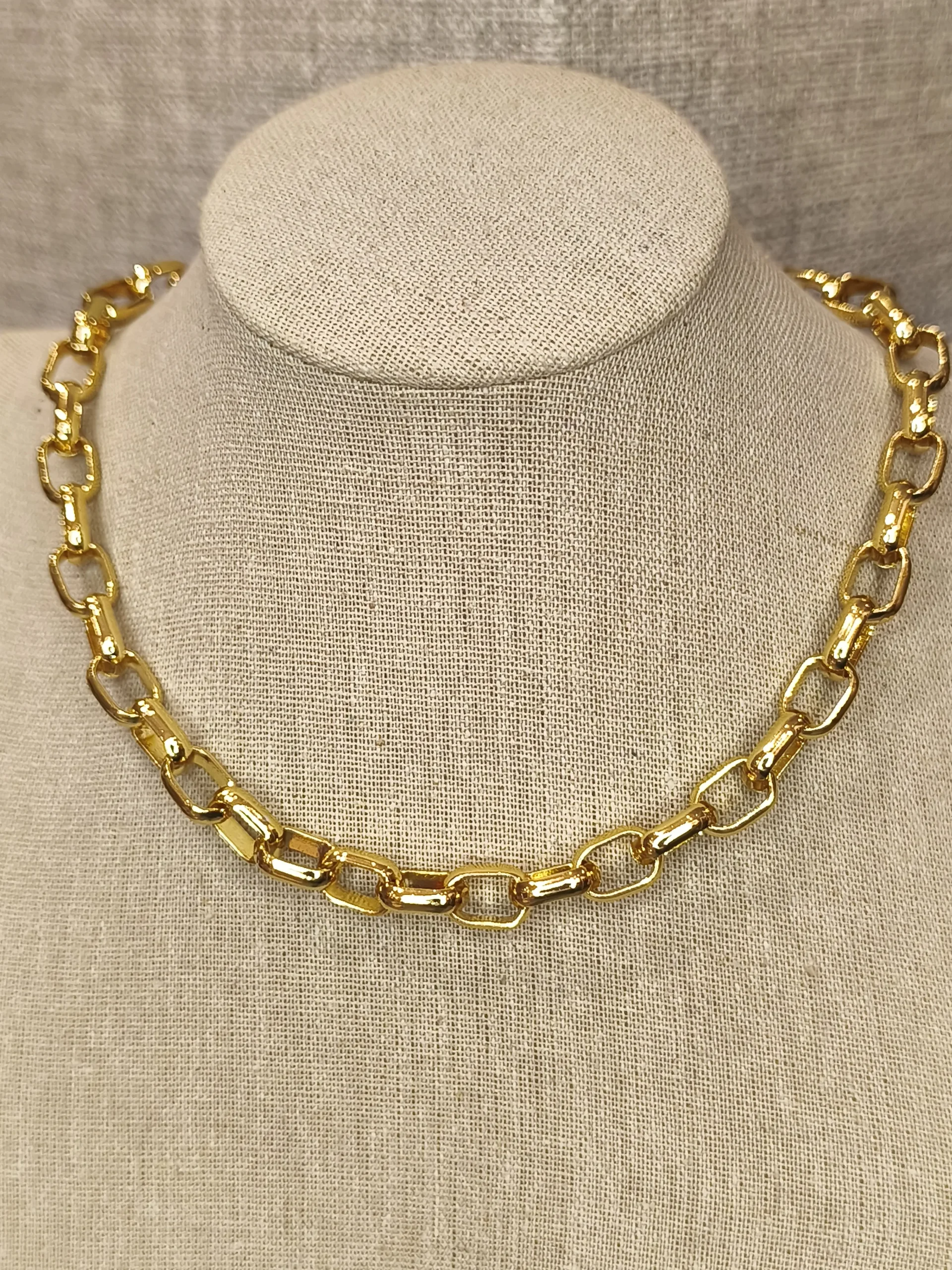 Este colar dourado de corrente pequena é a tradução perfeita do minimalismo sofisticado ✨. Seus elos delicados criam uma linha contínua e leve, trazendo aquele brilho sutil que ilumina o colo sem pesar — ideal para mulheres que valorizam peças discretas, mas cheias de elegância. O dourado polido acrescenta um toque quente e refinado, funcionando como um acessório versátil que acompanha desde a rotina intensa de trabalho até momentos mais relaxados do fim de semana. É o tipo de colar que se torna indispensável no porta-joias: sozinho, traz delicadeza; em mix, adiciona textura e profundidade ao look com muita naturalidade.