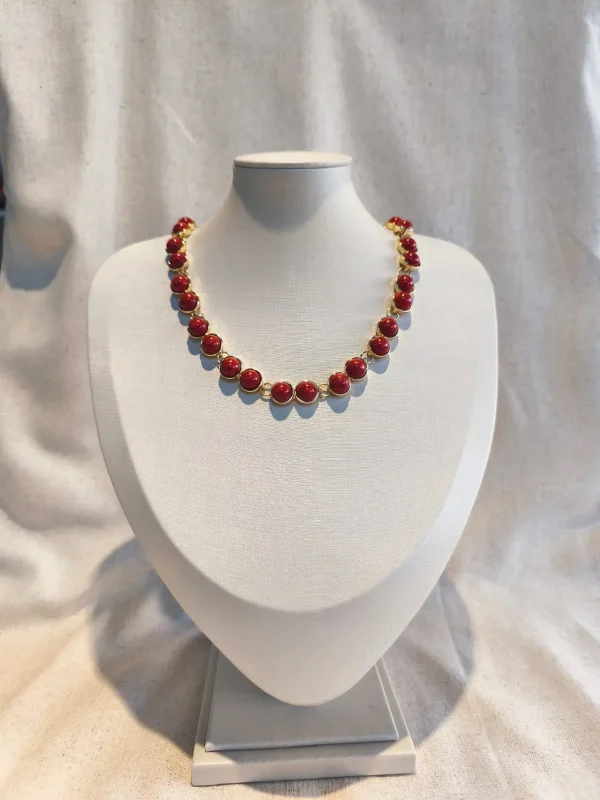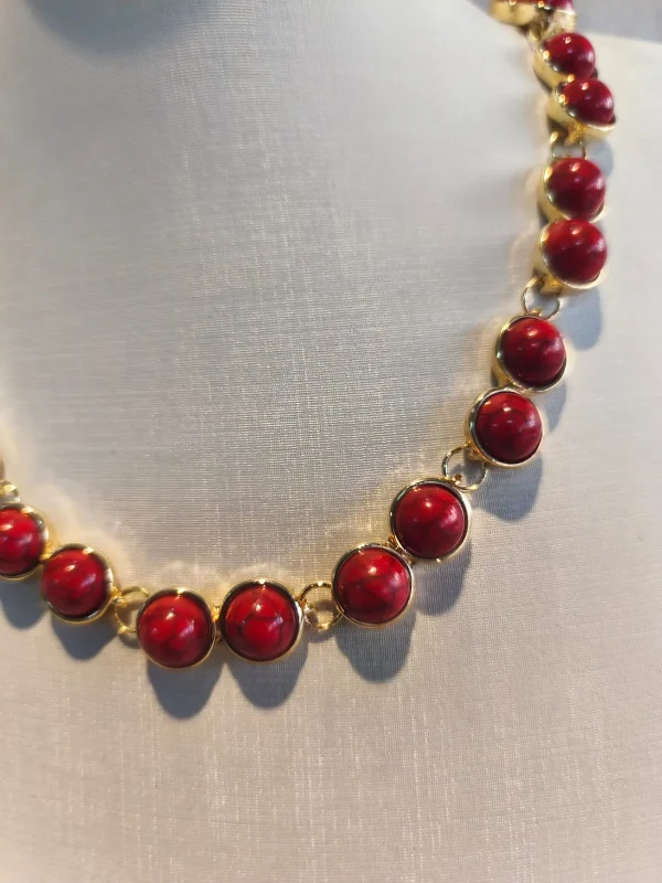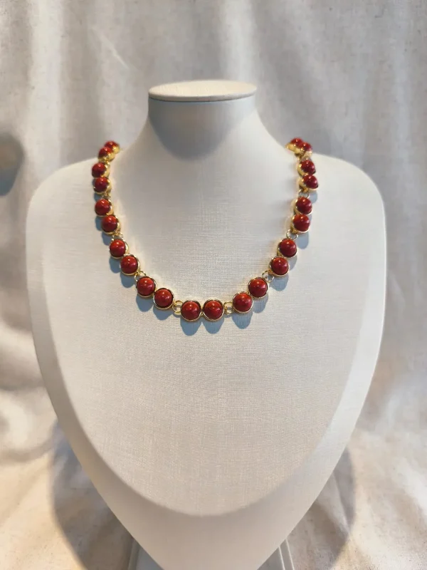 O Colar dourado com esferas vermelhas é puro charme com sofisticação ✨