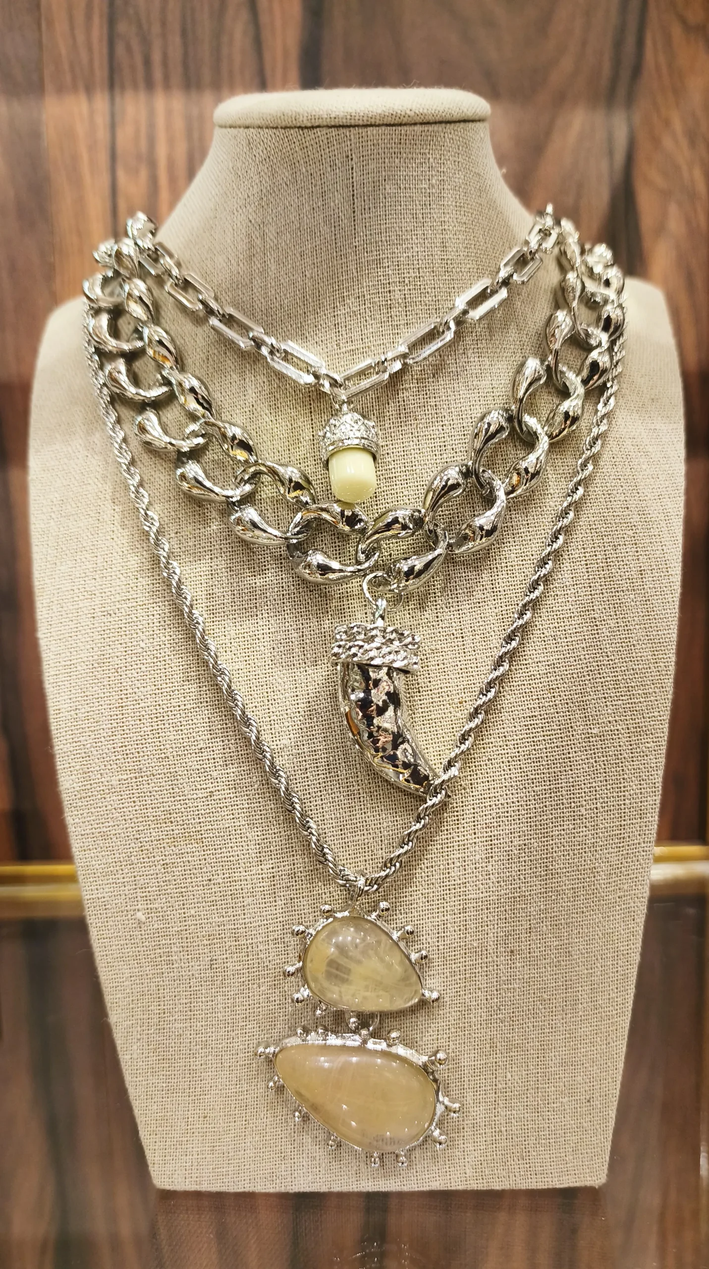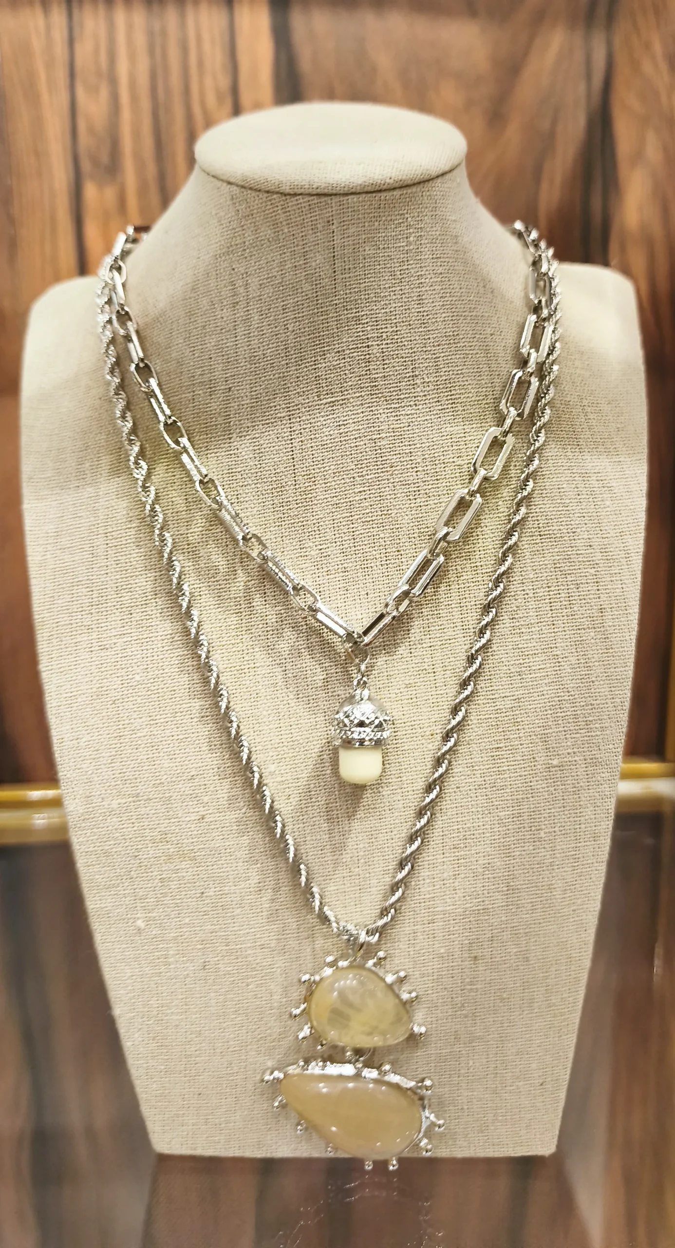 COLAR DUPLO PRATEADO RESINA