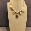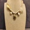 Palavras-chave: colar de madeira, colar com pedra, colar dourado, colar artesanal, colar sofisticado, acessório feminino, colar exclusivo.