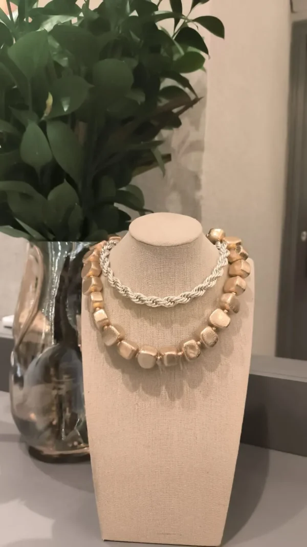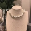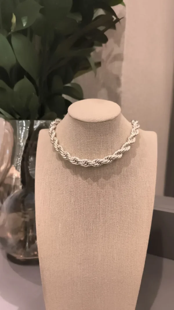 Este colar prata traz uma corrente encorpada e entrelaçada, com visual elegante e marcante. 💥 O acabamento brilhante garante um toque moderno e poderoso, perfeito para composições mais urbanas ou para contrastar com peças delicadas. ✨