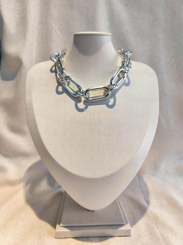 O Colar corrente prateado é moderno, impactante e cheio de estilo ✨