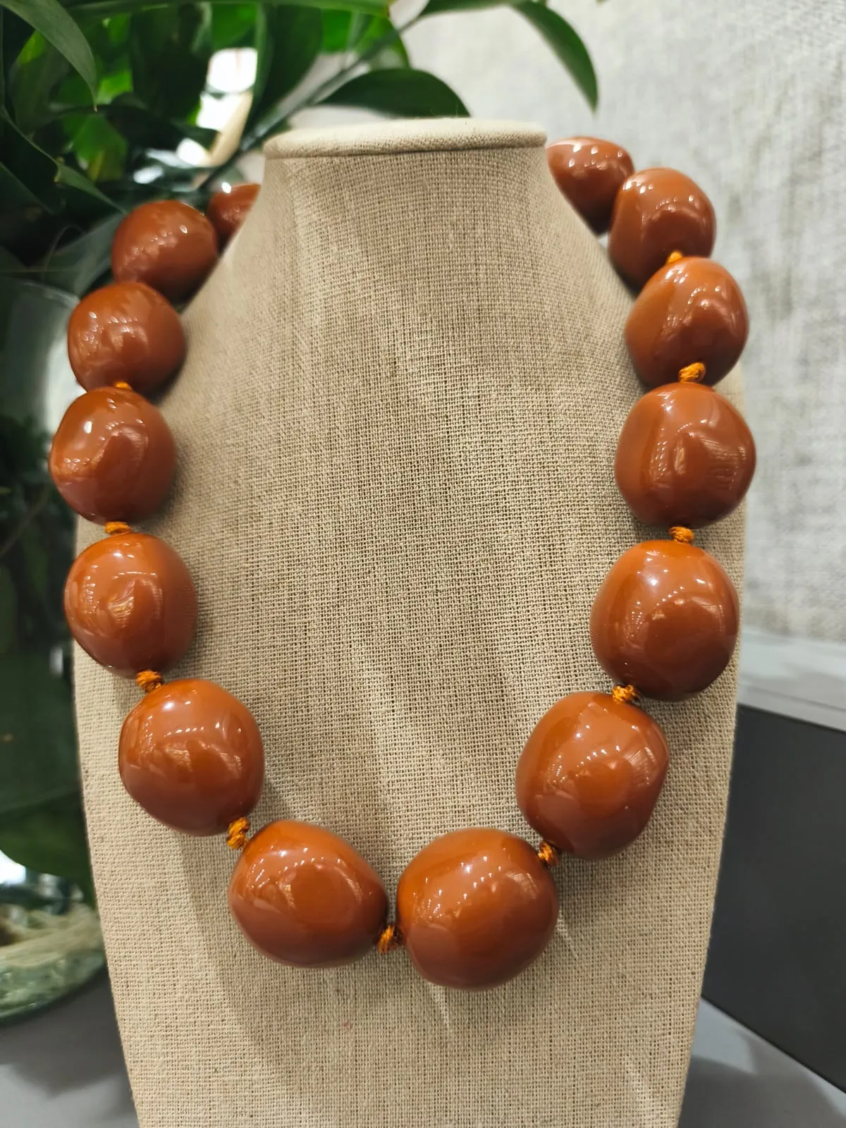 O colar resina marrom é uma peça elegante e atemporal, com um design que valoriza o volume e a textura das esferas em resina. As contas grandes em tom marrom terroso trazem um ar sofisticado e natural, perfeito para composições que unem modernidade e estilo orgânico. Seu brilho sutil e acabamento polido destacam a riqueza da cor e tornam o acessório versátil para diversas ocasiões.
