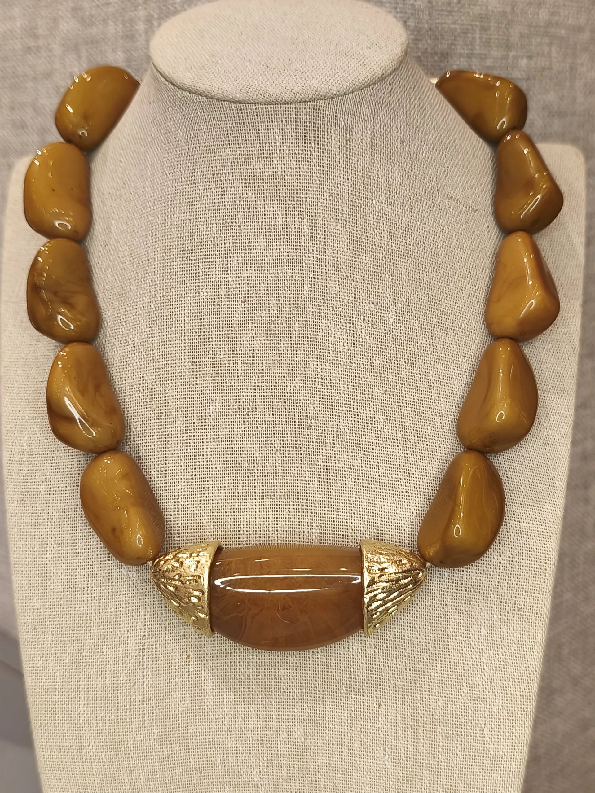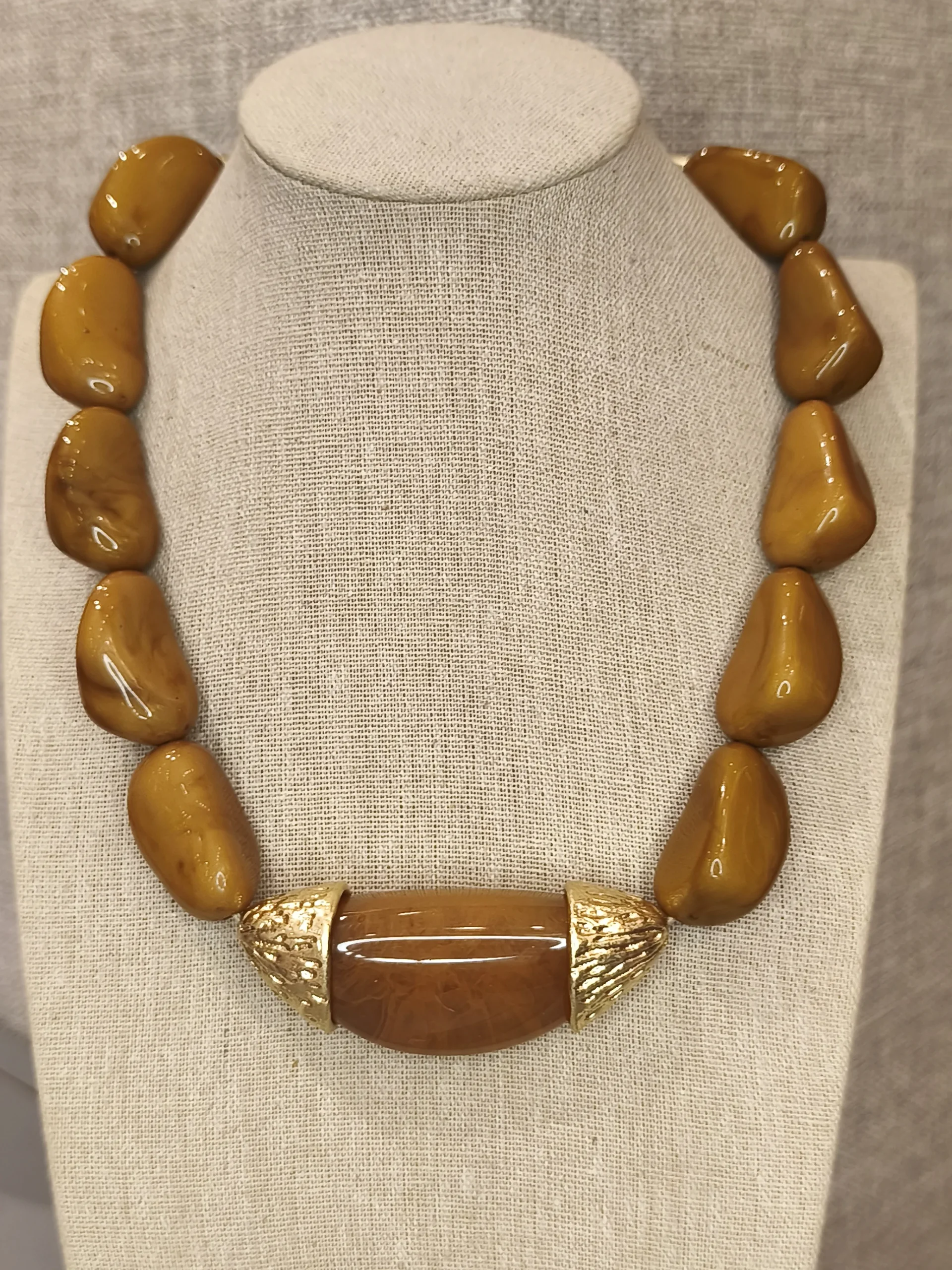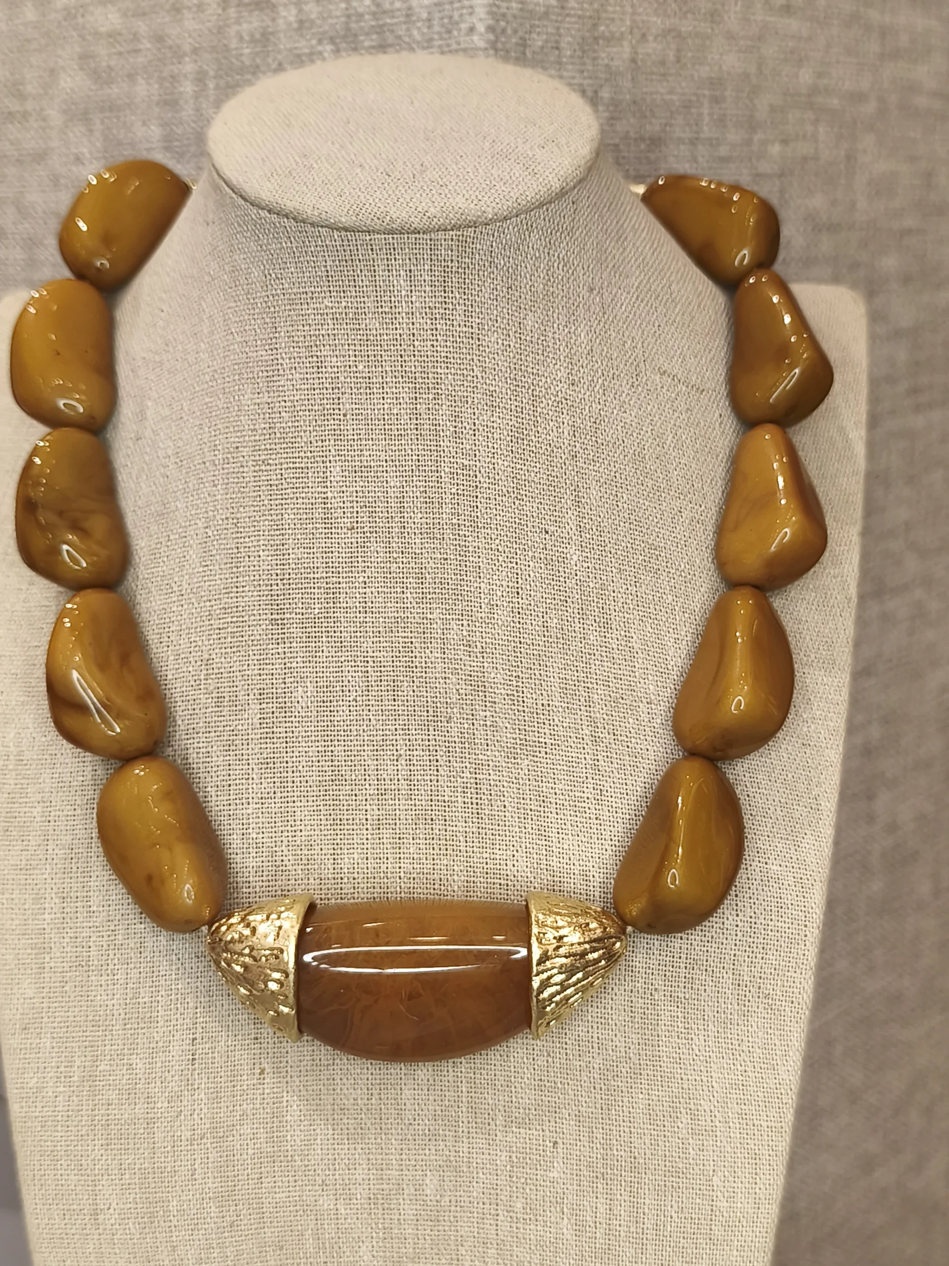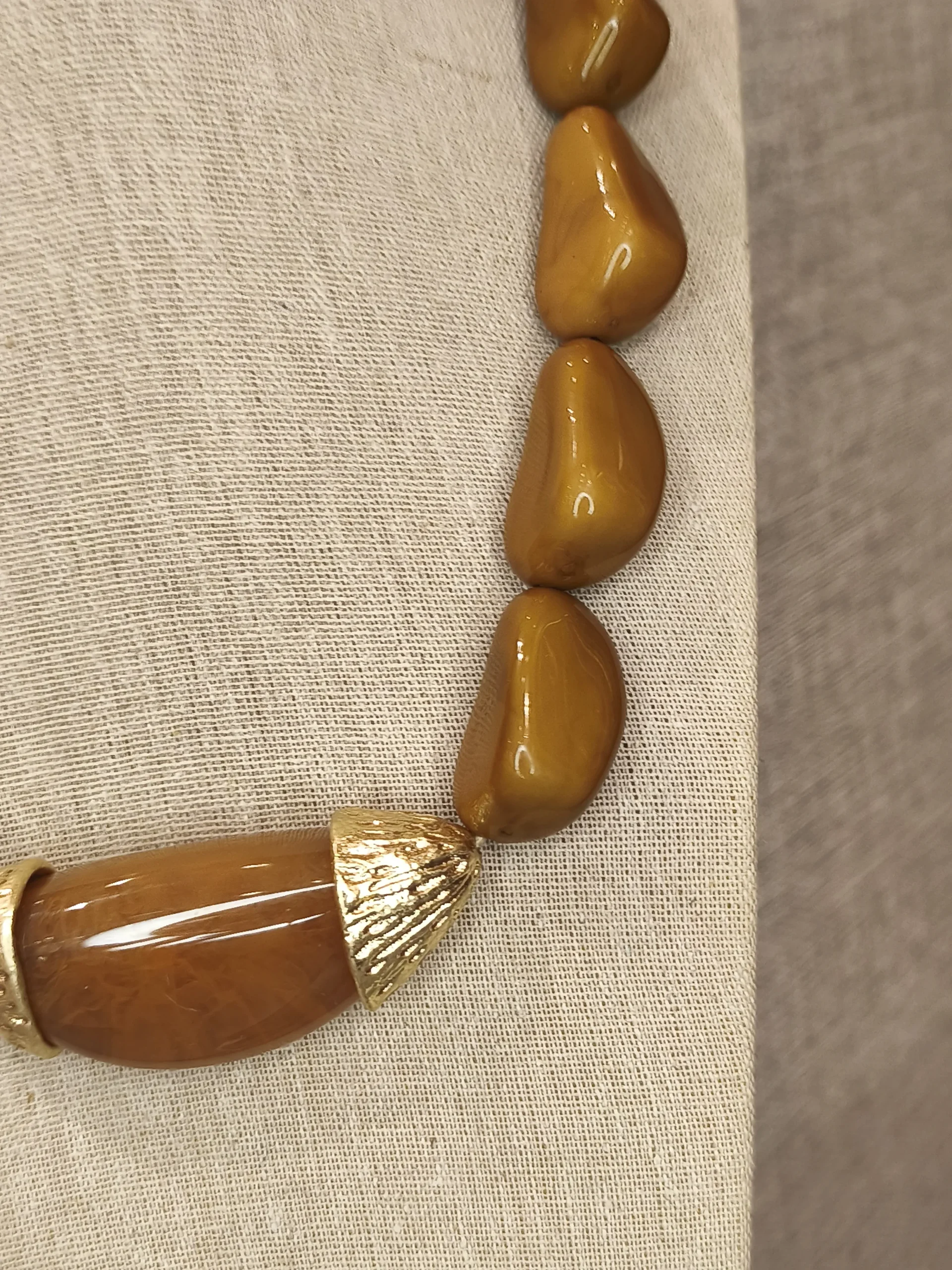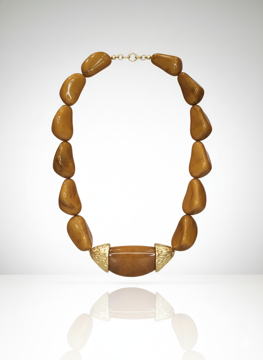 Este colar de resina marrom com detalhes dourados é uma peça que une força, modernidade e um charme orgânico irresistível ✨. Suas contas grandes, em um tom terroso sofisticado, têm formato irregular que remete à natureza e cria um visual rico em textura e personalidade. No centro, o detalhe em resina lisa acompanhado de duas extremidades douradas com leve textura acrescenta luminosidade e contraste, elevando o design com elegância. É o tipo de colar perfeito para mulheres que apreciam acessórios de presença, mas que ainda assim buscam versatilidade e equilíbrio — uma peça que transforma o look sem esforço, seja com alfaiataria estruturada, seja com vestidos fluidos.