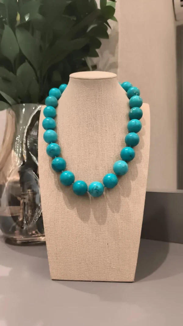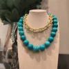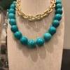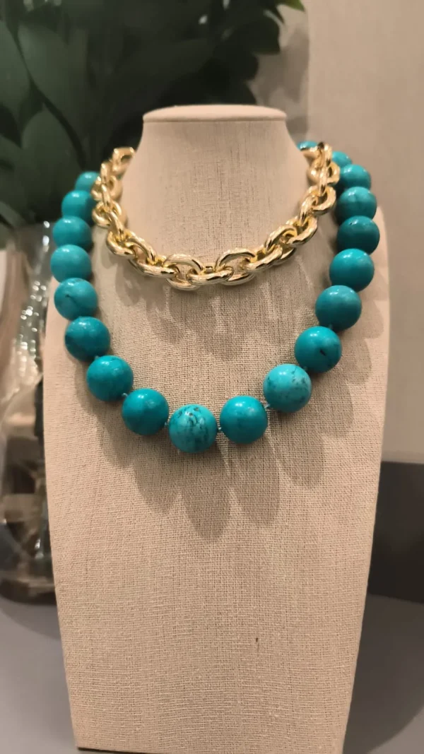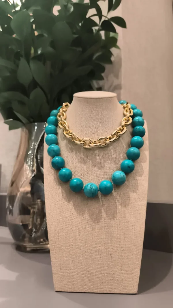 Com esferas grandes em tom turquesa intenso, este colar é a definição de presença! 💫 Uma peça que transmite energia, frescor e elegância ao mesmo tempo. Ideal para compor looks minimalistas que pedem um ponto de cor ou para combinar com estampas tropicais e boêmias. 🌴✨
