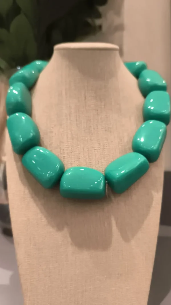 💎💚 Colar Turquesa em Resina – Volume e Elegância Tropical