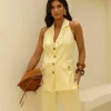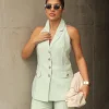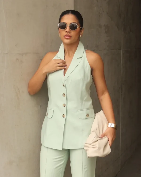 ✨ Dica de uso: além do conjunto da foto, experimente usá-lo aberto, sobre uma regata de seda e uma calça jeans reta. Finalize com sandálias de salto bloco para um visual elegante, porém descontraído, perfeito para um happy hour ou encontro casual chic.