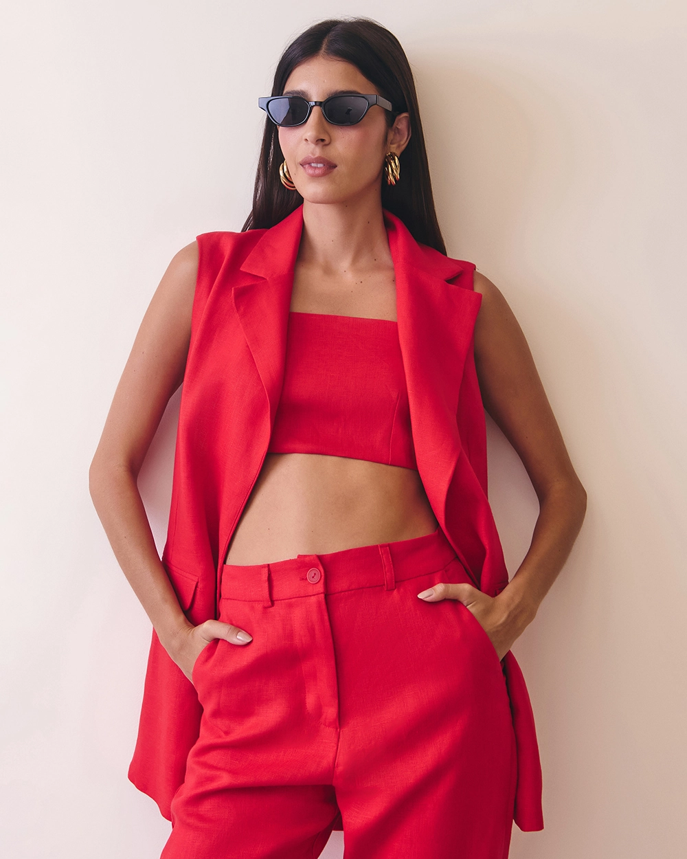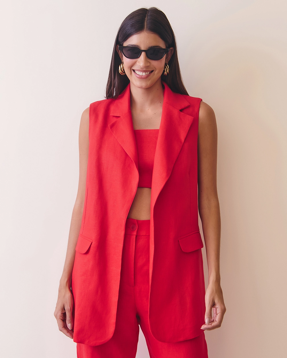 O colete de linho alongado ❤️ é a peça que traduz sofisticação e atitude em um só olhar. Com corte de alfaiataria e caimento fluido, ele alonga a silhueta e traz uma elegância natural, típica do linho puro. O tecido 100% linho confere textura e leveza, enquanto o tom vibrante de vermelho ilumina o visual com modernidade e confiança ✨. O design sem mangas e o comprimento alongado criam uma proposta versátil e contemporânea, perfeita para compor produções refinadas — do trabalho ao final de semana chic. É uma daquelas peças que transformam o look instantaneamente, adicionando estrutura e estilo com naturalidade.