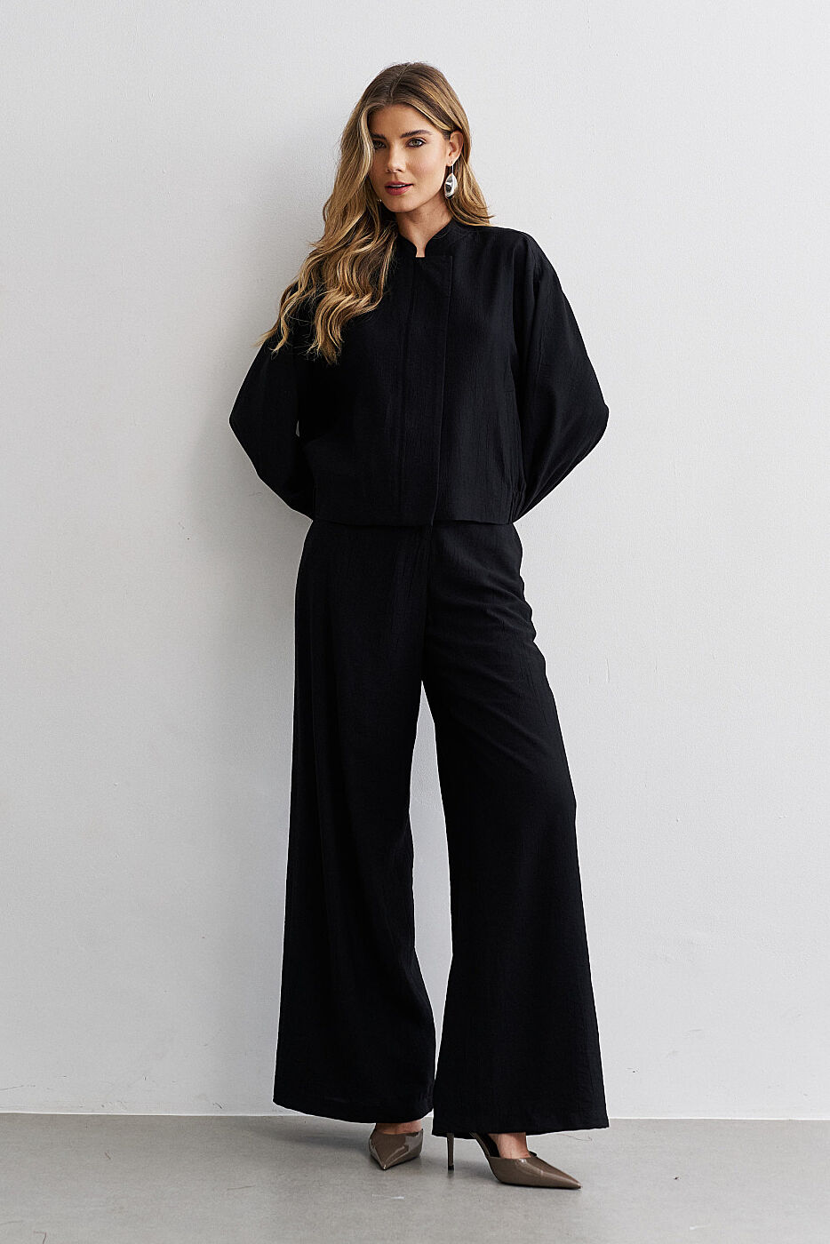 Moderno, sofisticado e com uma elegância urbana impecável 🤎. Este conjunto em crepe é a escolha perfeita para mulheres que buscam conforto, estilo e informação de moda em uma proposta contemporânea e refinada. A jaqueta estilo bomber, com zíper frontal e bolsos funcionais, traz um ar atual e despojado na medida certa, equilibrando perfeitamente com o caimento elegante do crepe. A modelagem levemente ampla, com mangas volumosas e acabamento impecável, cria um visual moderno e cheio de personalidade, sem perder a sofisticação. A calça de modelagem ampla, com caimento fluido e elegante, alonga a silhueta e garante conforto absoluto ao longo do dia. Confeccionado em crepe leve e macio, o conjunto acompanha os movimentos do corpo com naturalidade, sendo ideal para produções urbanas chic, viagens, compromissos profissionais mais criativos ou looks estilosos para o dia a dia. Em um tom bege terroso sofisticado, ele traduz modernidade, elegância e praticidade em uma única proposta ✨.
