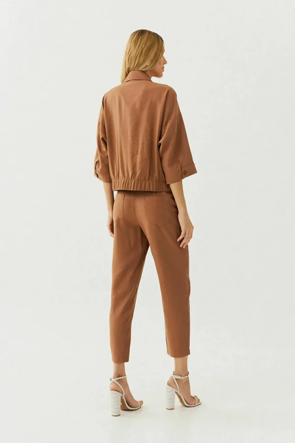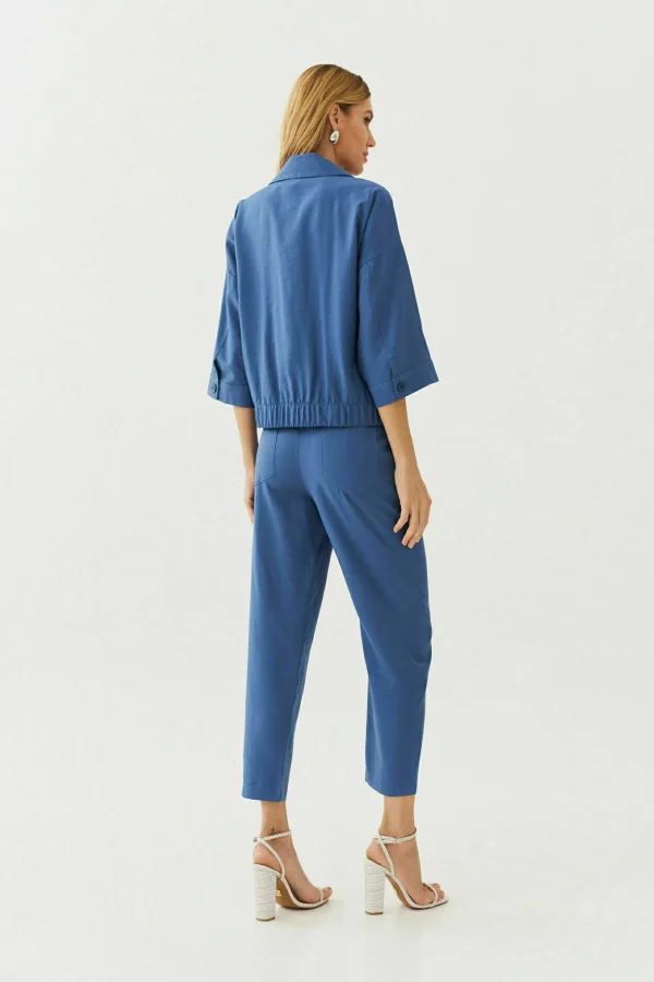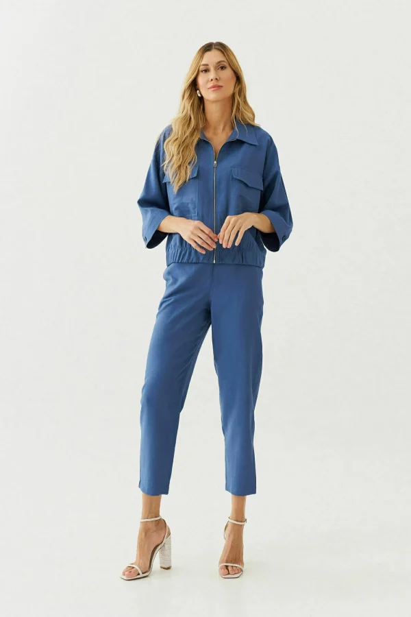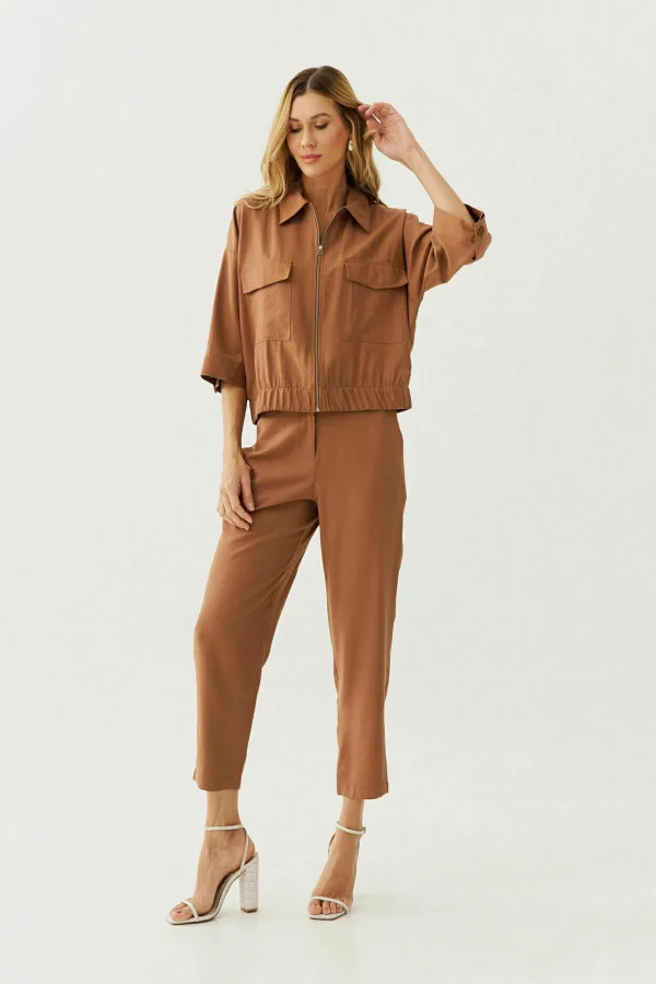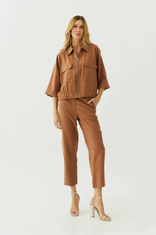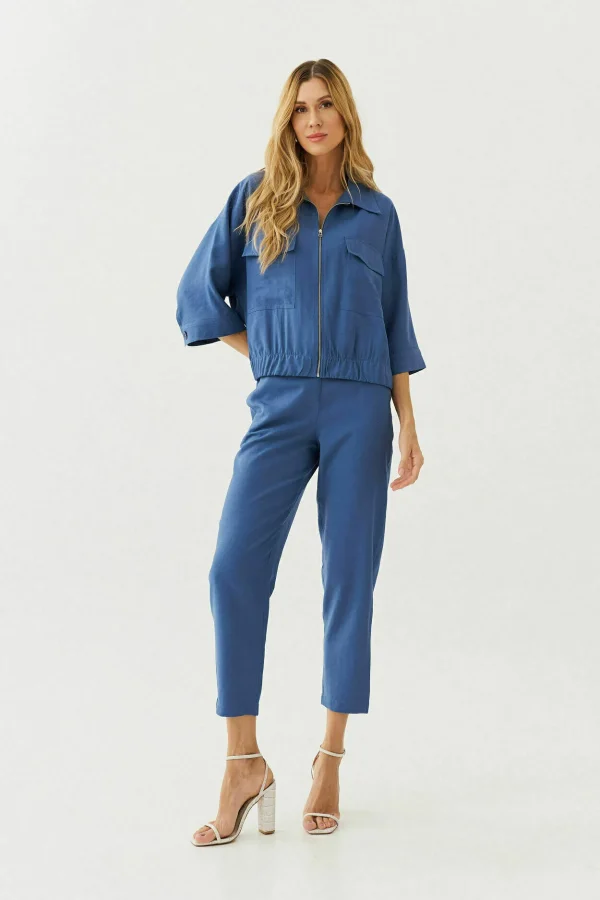 Esse conjunto em alfaiataria de viscose é a combinação perfeita de estilo e praticidade. A jaqueta com bolsos frontais e barra com elástico traz um ar moderno e descontraído, enquanto a calça reta alonga a silhueta e garante aquele caimento impecável. É uma proposta versátil, que vai do dia a dia elegante a ocasiões que pedem um toque de sofisticação descomplicada.