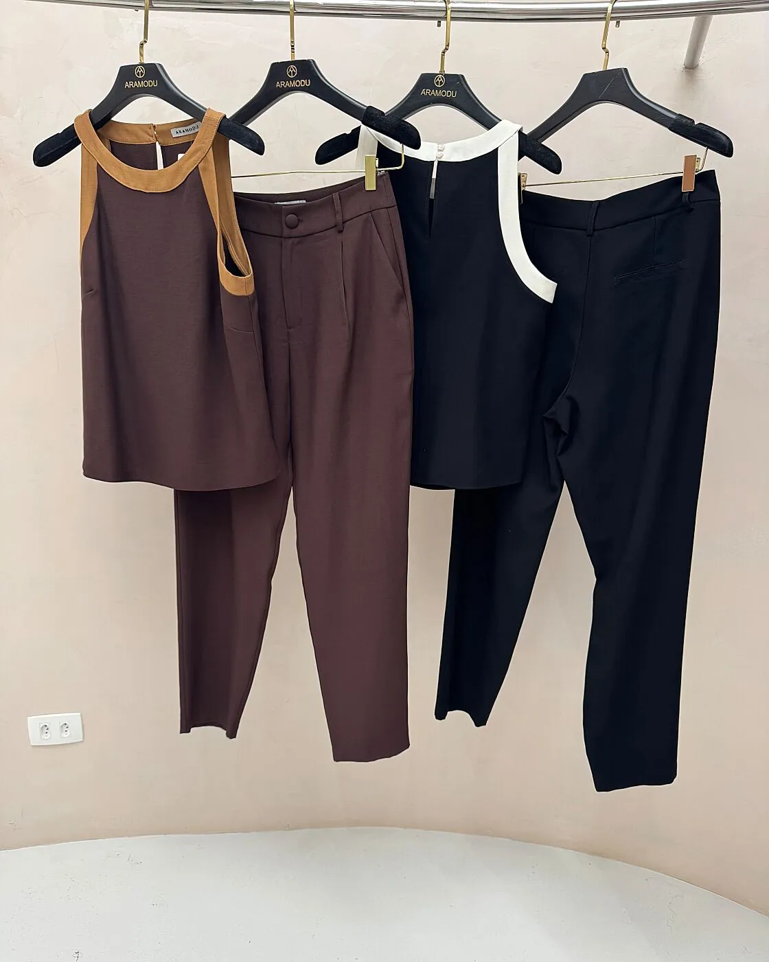 Dica de estilo 💡: use esse conjunto feminino bicolor com sandálias de salto médio ou scarpins para uma proposta elegante, ou combine com flats sofisticadas e acessórios dourados para um visual moderno e urbano.