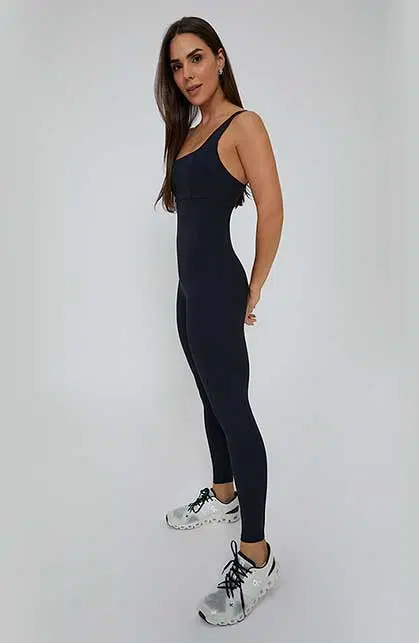 Ficha técnica: confeccionado em poliamida com elastano, o macacão possui modelagem ajustada, decote reto e alças médias. Cor preta. Produzido no Brasil. Lavar à mão com sabão neutro e secar à sombra.