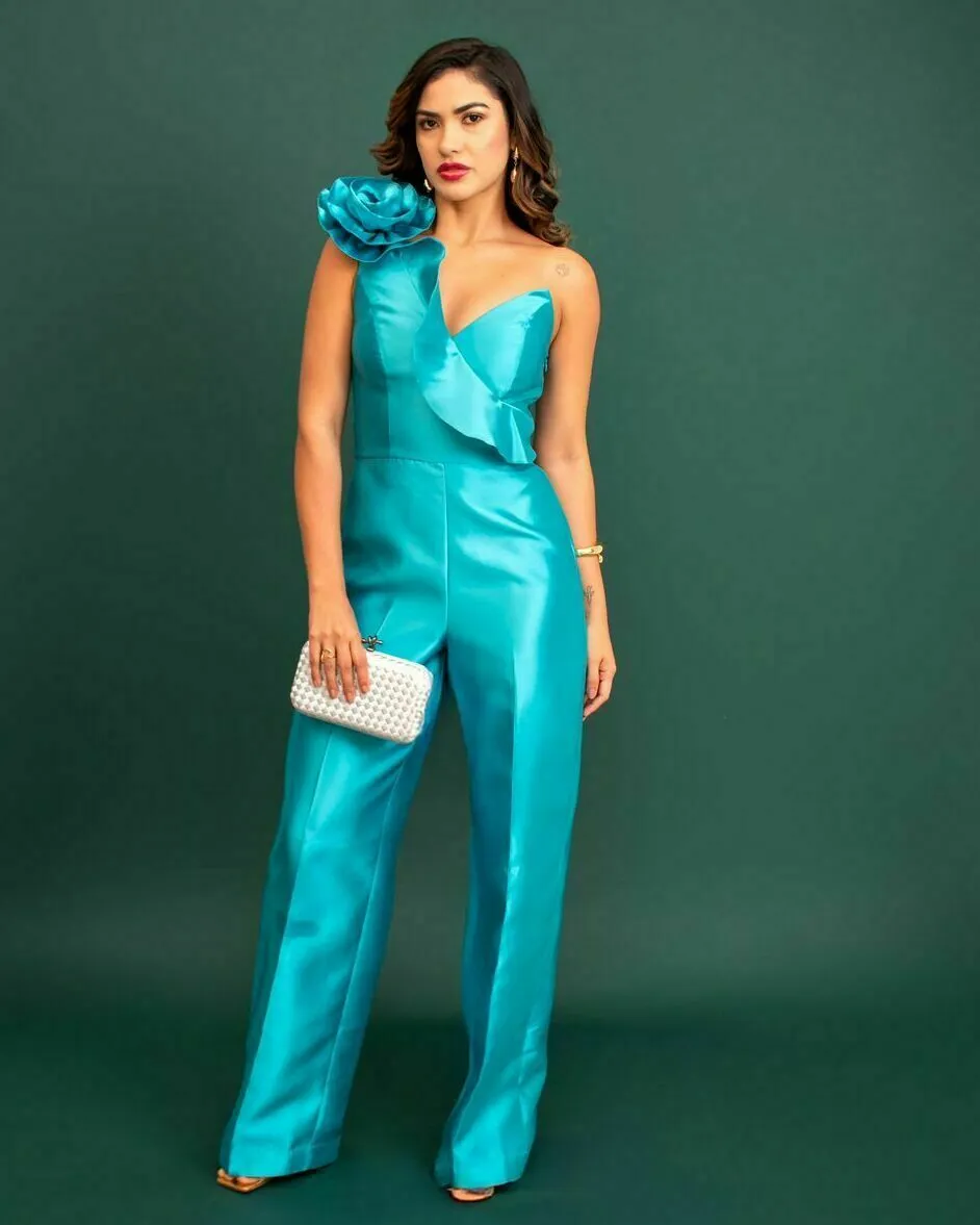 O Macacão Monique é a tradução perfeita da elegância moderna com um toque de ousadia. Confeccionado em zibeline de poliéster, ele combina estrutura e movimento em uma silhueta marcante e feminina. O decote de um ombro só traz um equilíbrio entre sensualidade e sofisticação, realçado pelo detalhe de flor estruturada em forma de babado, que se desenha suavemente até a cintura, criando um ponto de destaque artístico e escultural. A calça pantalona com pregas sutis na parte de trás garante um caimento fluido e impecável, alongando a silhueta e conferindo leveza ao caminhar. O zíper posterior embutido mantém o visual limpo e minimalista, permitindo que o foco fique nos detalhes da modelagem e na imponência do tecido. É uma peça ideal para quem deseja transmitir confiança e elegância em eventos noturnos, coquetéis e celebrações especiais.
