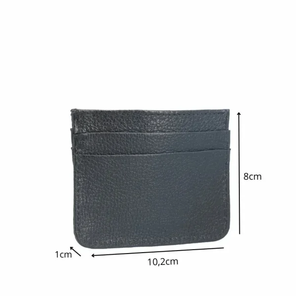 Dimensões: 10,2 × 8 × 1 cm (L × A × P) e peso de apenas 25 g. Logo, é extremamente leve e discreto, ideal para carregar 2–4 cartões principais, cédulas dobradas e um documento. Assim, tudo fica organizado e acessível sem volume.