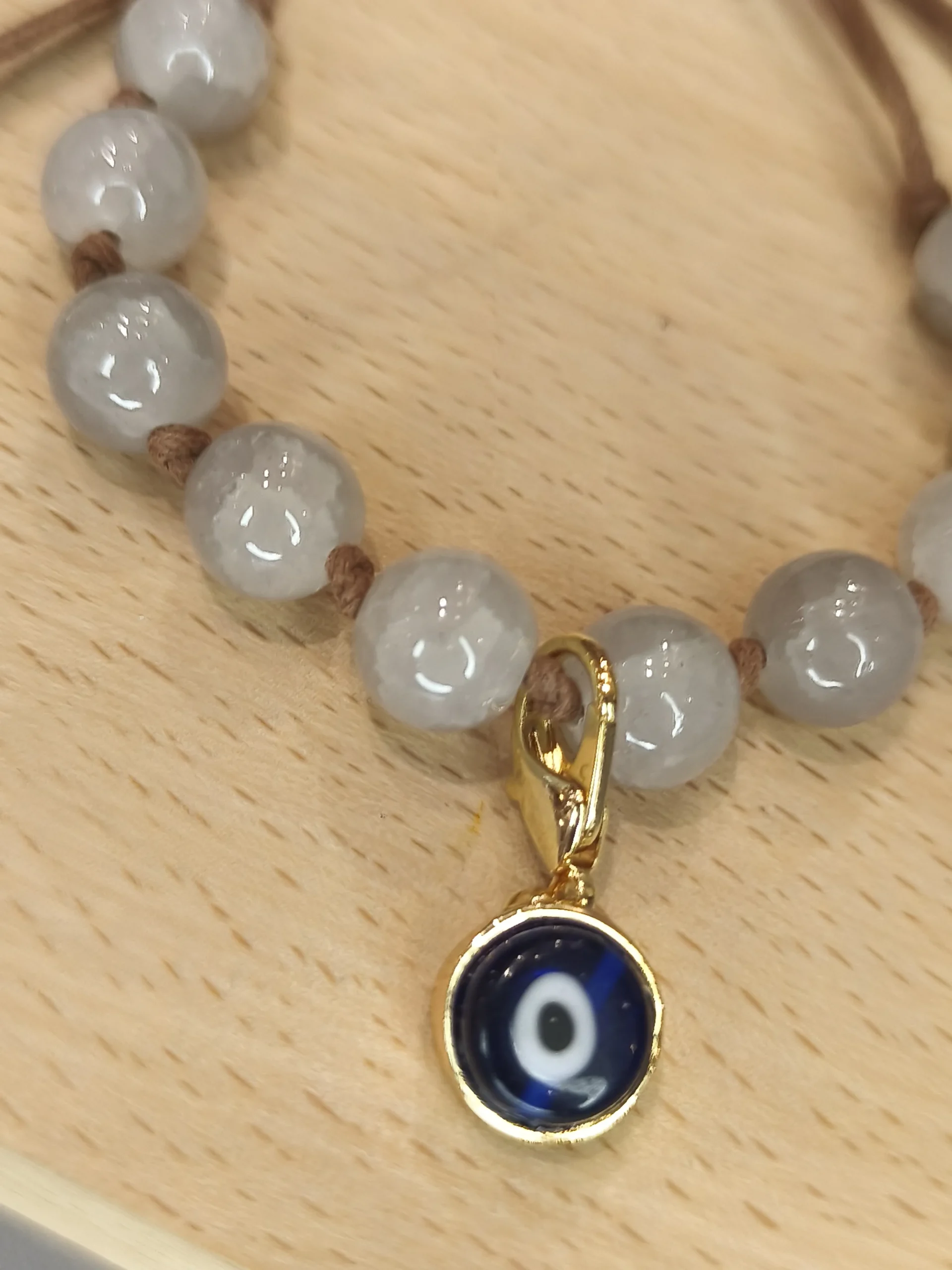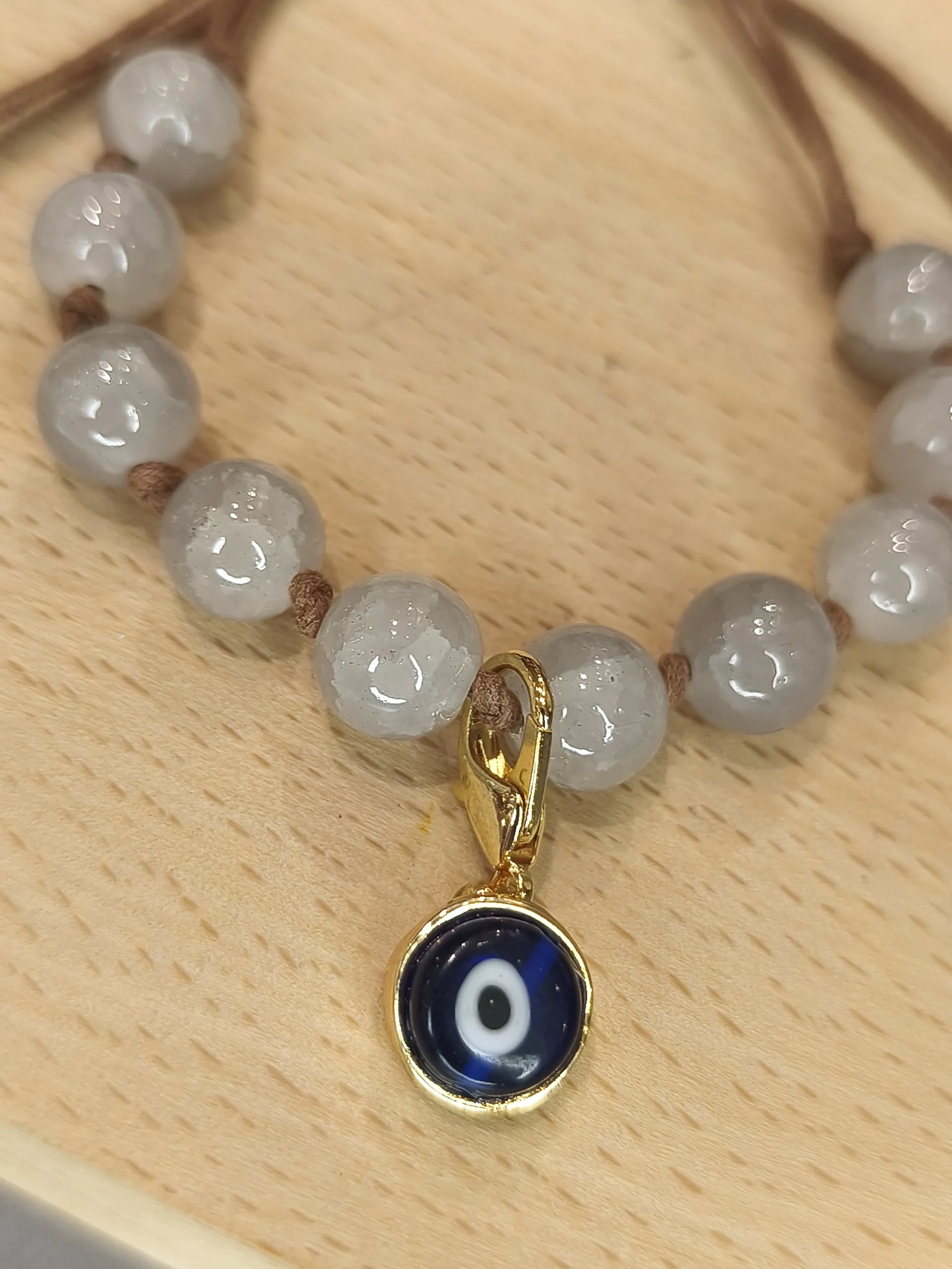 Esta pulseira de murano com pedras é uma peça que carrega leveza, proteção e um charme artesanal irresistível ✨. As contas arredondadas em tom translúcido e levemente acinzentado criam um visual suave, elegante e extremamente versátil — perfeita para mulheres que apreciam acessórios discretos, mas cheios de intenção. O cordão marrom traz um toque orgânico e contemporâneo, enquanto o fecho ajustável garante conforto e praticidade no dia a dia. O pequeno pingente dourado com detalhe azul adiciona um brilho sutil e um ponto de cor delicado, criando aquele contraste que transforma a pulseira em um item único, cheio de personalidade e significado. É daquelas peças que acompanham desde looks casuais até produções mais refinadas, sempre com muita naturalidade.
