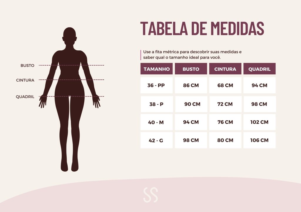 Modelagem reta com leve folga no busto e nas costas. Logo, escolha o tamanho habitual para ajuste confortável; se preferir mais amplitude, considere um número acima. O comprimento favorece usar por dentro ou solta e, desse modo, amplia as possibilidades de combinação.