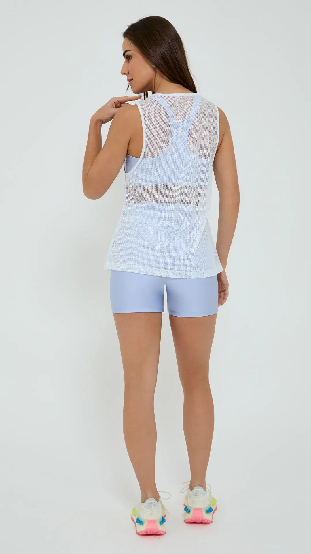 Dica de estilo: combine a Regata Cavada com uma legging de cós alto ou uma bermuda de compressão, criando um look fitness equilibrado, leve e cheio de estilo — ideal para treinos intensos ou momentos casuais.