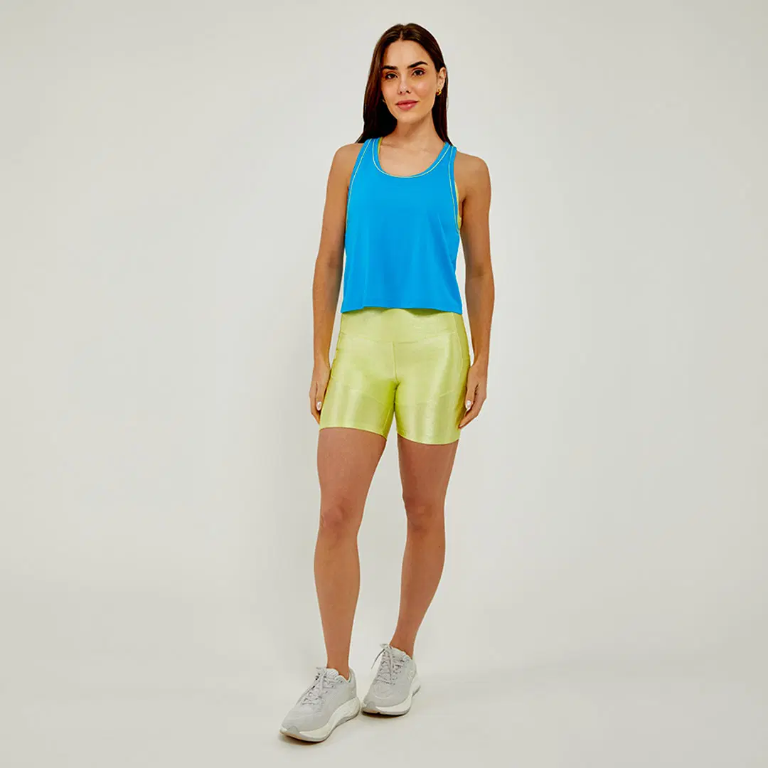Ficha técnica: confeccionada em poliéster com elastano, a regata possui modelagem ampla, decote redondo e cavas profundas. Cor azul. Produzida no Brasil. Lavar à máquina com cores similares e secar à sombra.