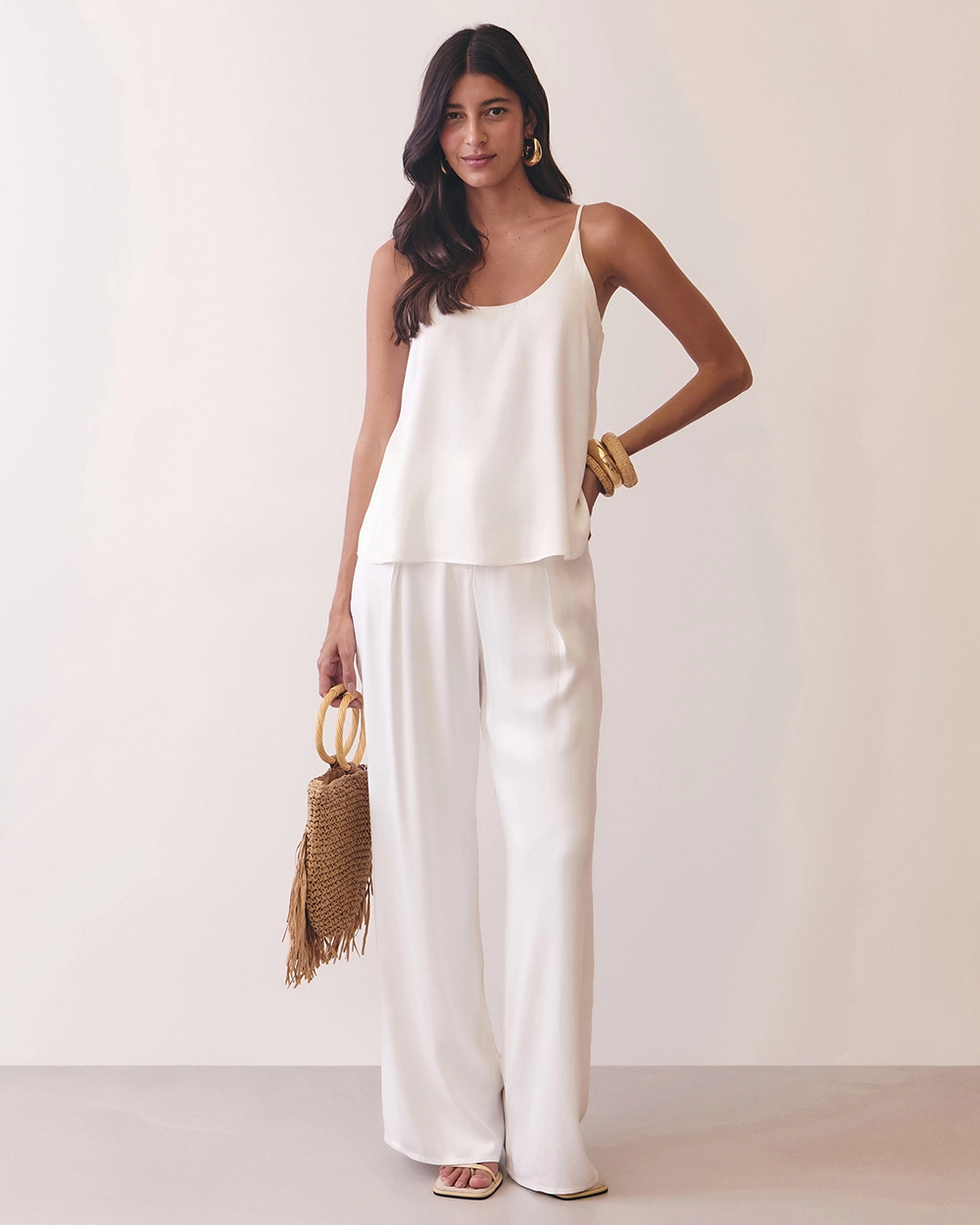 Dica de estilo: use com calça de alfaiataria e blazer para um visual elegante, ou combine com shorts e acessórios naturais para um look resort chic. 🌿