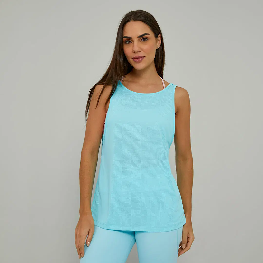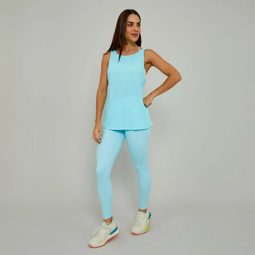 Dica de estilo: combine a Regata com Decote com uma legging lisa de cós alto ou uma bermuda de compressão, criando um look fitness equilibrado, leve e elegante — ideal para o dia a dia ativo, com um toque de estilo.