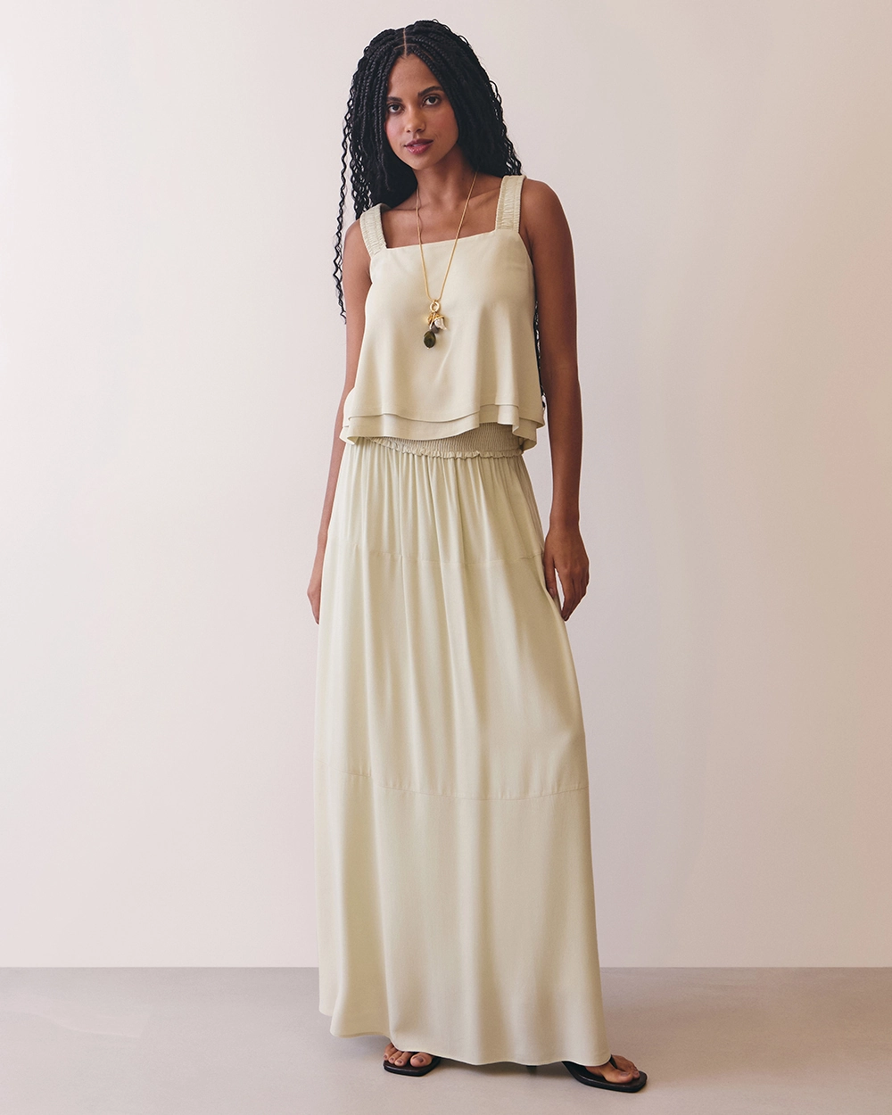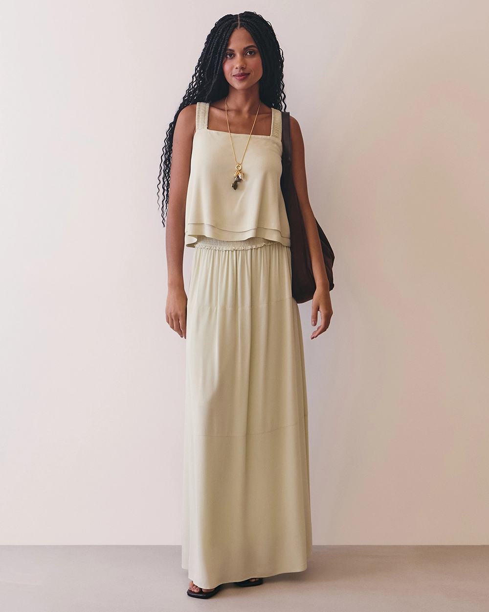 Dica de estilo: combine com uma saia longa fluida no mesmo tom para um look monocromático elegante, ou use com calça de linho e sandálias de tiras finas para um visual casual chic ideal para o dia a dia.