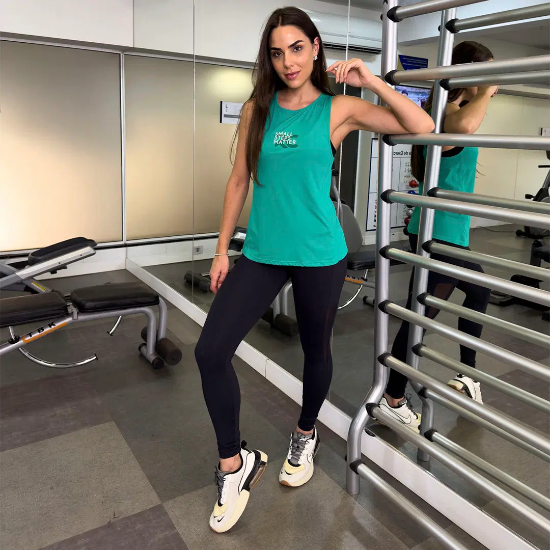 Dica de estilo: combine a Regata com Trançador com uma legging lisa de cós alto ou uma bermuda de compressão, criando um look fitness equilibrado, prático e elegante — perfeito para treinar com leveza e confiança.