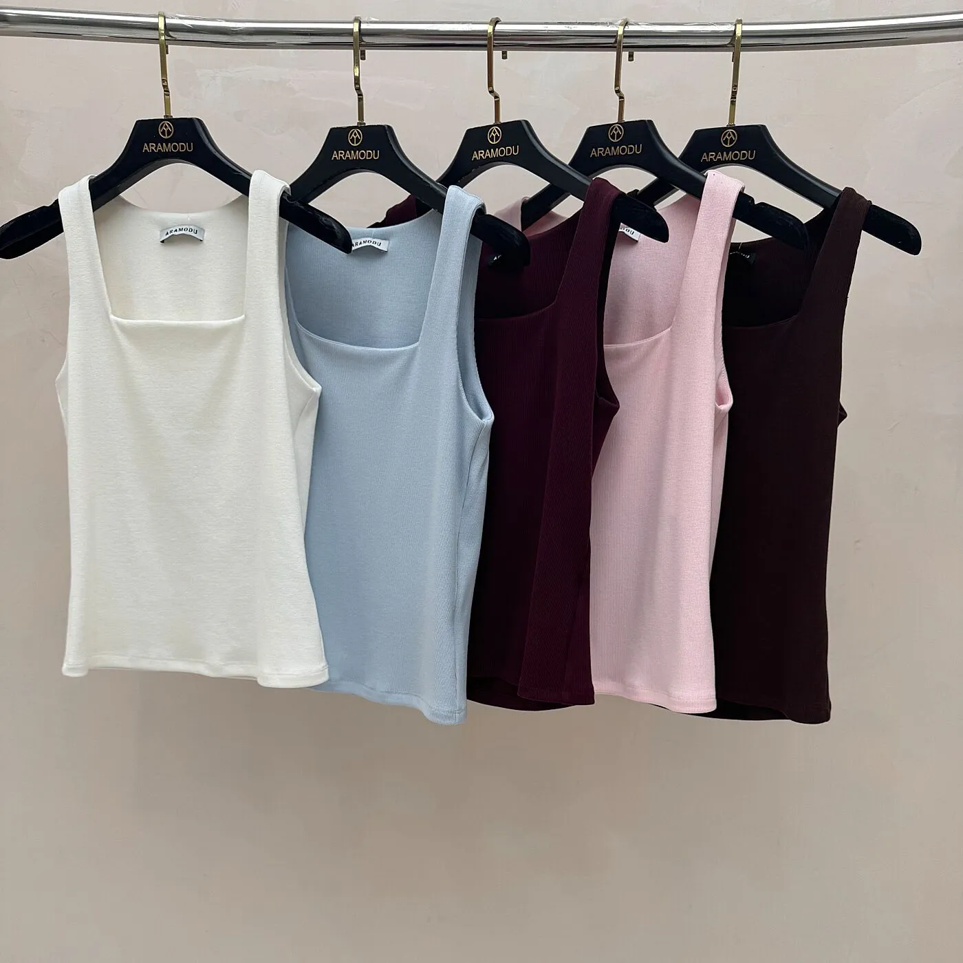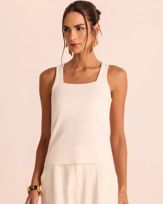Dica de estilo 💡: use essa regata feminina de ribana com calça de alfaiataria de cintura alta e acessórios dourados para um visual elegante e contemporâneo, ou combine com jeans reto e blazer estruturado para um look casual sofisticado.