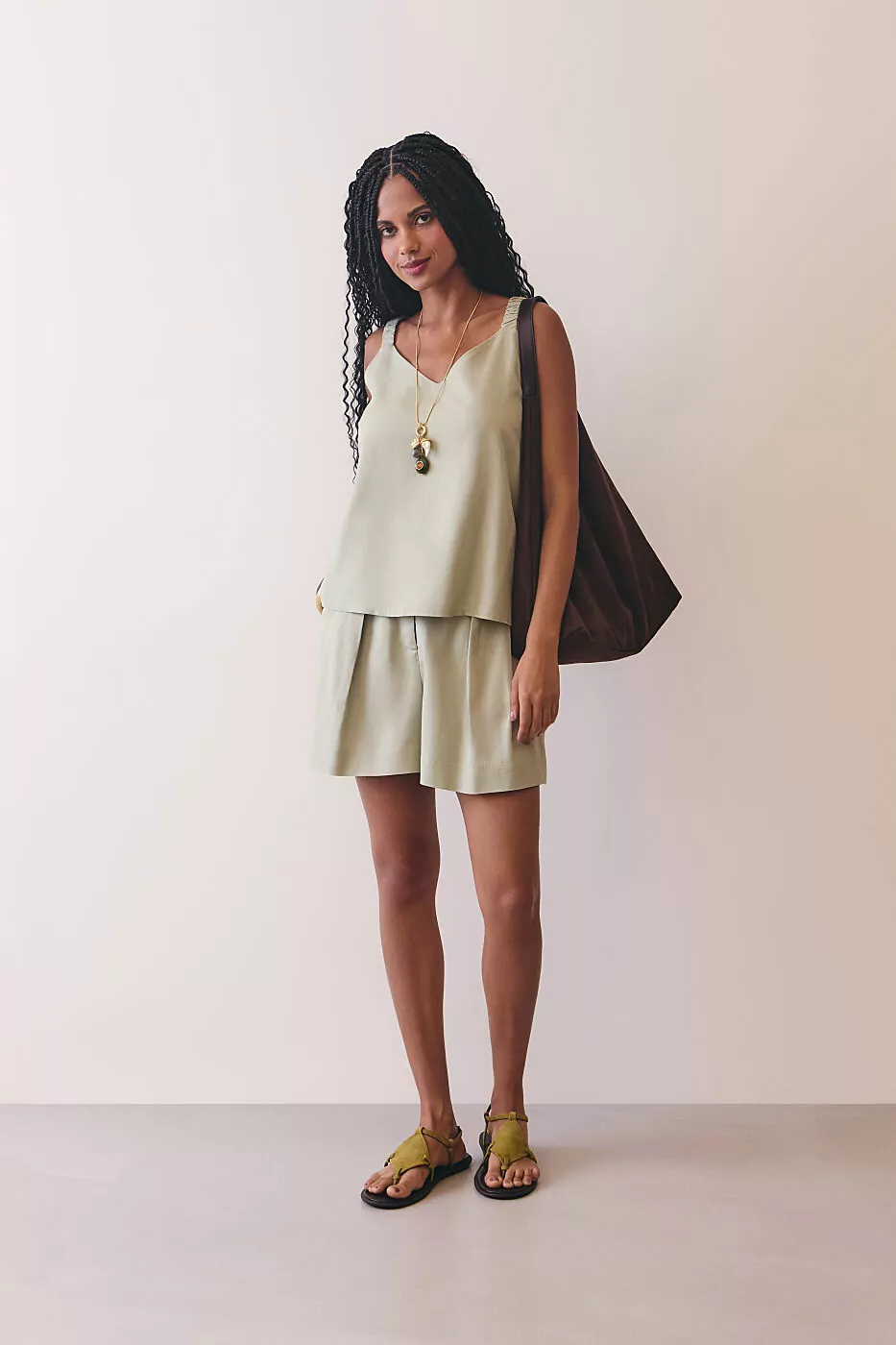 Dica de estilo: combine com uma calça ampla de alfaiataria e sandálias de salto bloco para um visual urbano sofisticado, ou use com shorts de linho e acessórios naturais para um look leve e despretensioso de fim de semana.